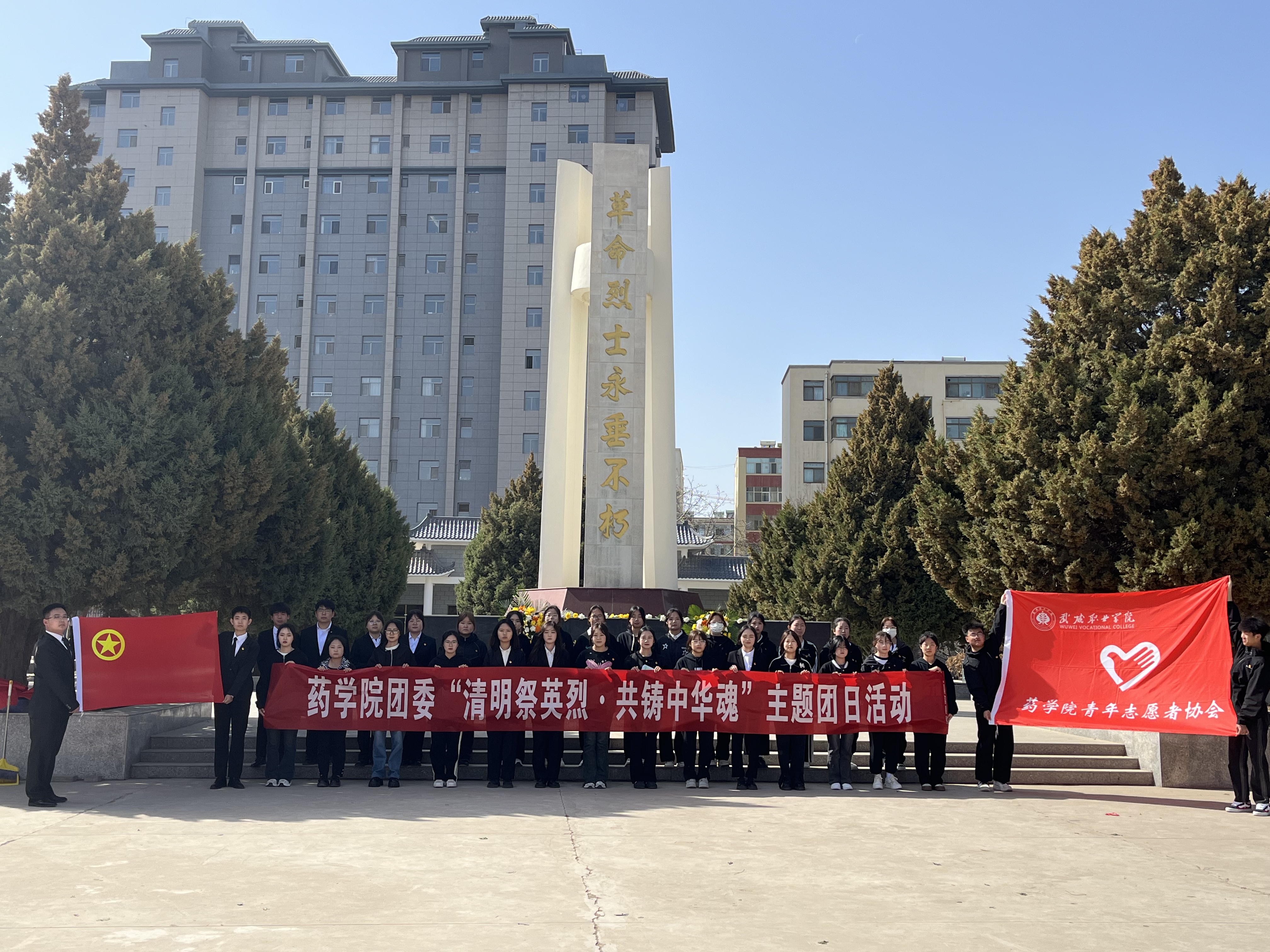 ? ? ?功昭日月千秋頌,義薄云天萬古存。為緬懷革命先烈的豐功偉績,弘揚(yáng)愛國主義精神,2024年4月3日下午,武威職業(yè)學(xué)院藥學(xué)院黨支部攜藥學(xué)院團(tuán)委前往涼州區(qū)植物園英雄紀(jì)念碑,開展以“清明祭英烈·共鑄中華魂”為主題的團(tuán)日活動。