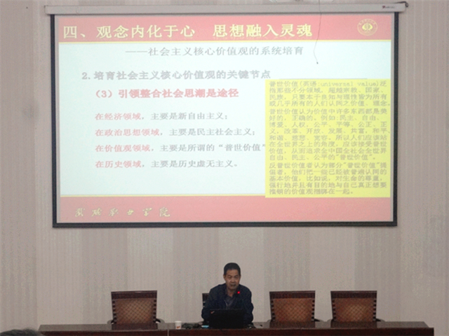 10月20日,我系邀請學(xué)院副院長翟存祥教授在學(xué)院正德廳為全系師生作了一場題為《如何踐行社會主義核心價值觀》的專題講座,講座由我系黨總支書記晏素珍主持。
