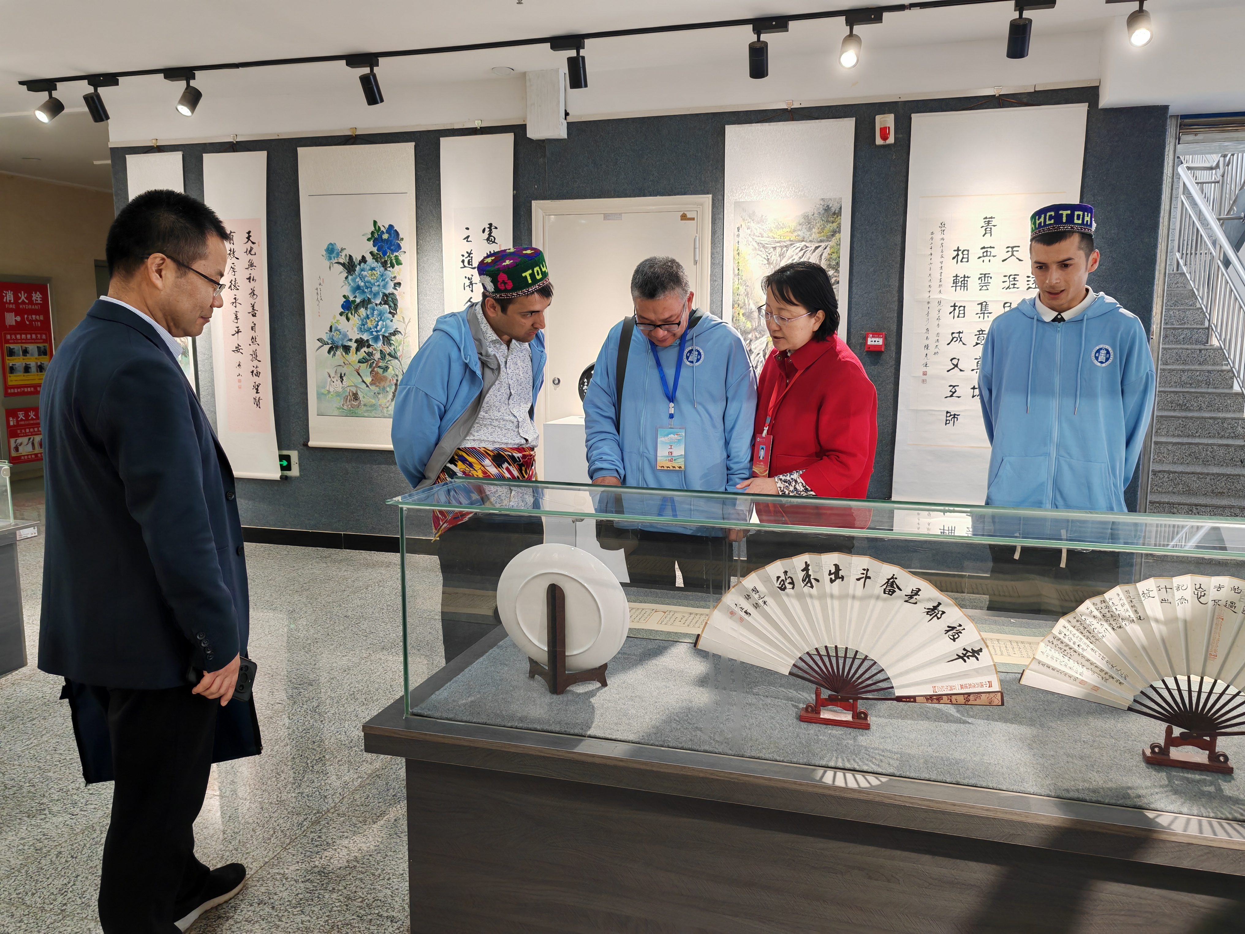 展演結(jié)束后,各參演學(xué)校帶隊(duì)老師、留學(xué)生觀看了學(xué)校攻鼓子藝術(shù)團(tuán)表演的非物質(zhì)文化遺產(chǎn)攻鼓子并參觀了學(xué)校。田迎春陪同觀看參觀。