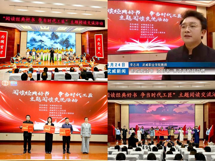 4月23日,由省總工會(huì)主辦、市總工會(huì)承辦,武威職業(yè)學(xué)院協(xié)辦的“閱讀經(jīng)典好書爭(zhēng)當(dāng)時(shí)代工匠”主題讀書交流活動(dòng)在菁英廳隆重舉行。省總工會(huì)三級(jí)調(diào)研員馬艷,市總工會(huì)黨組書記、常務(wù)副主席康金蓮,學(xué)校黨委副書記翟存祥出席活動(dòng)。全市職工書屋、便利型職工閱讀站點(diǎn)、勞模書架建設(shè)單位工會(huì)負(fù)責(zé)人,市、縣區(qū)總工會(huì)干部職工230多人參加活動(dòng)。