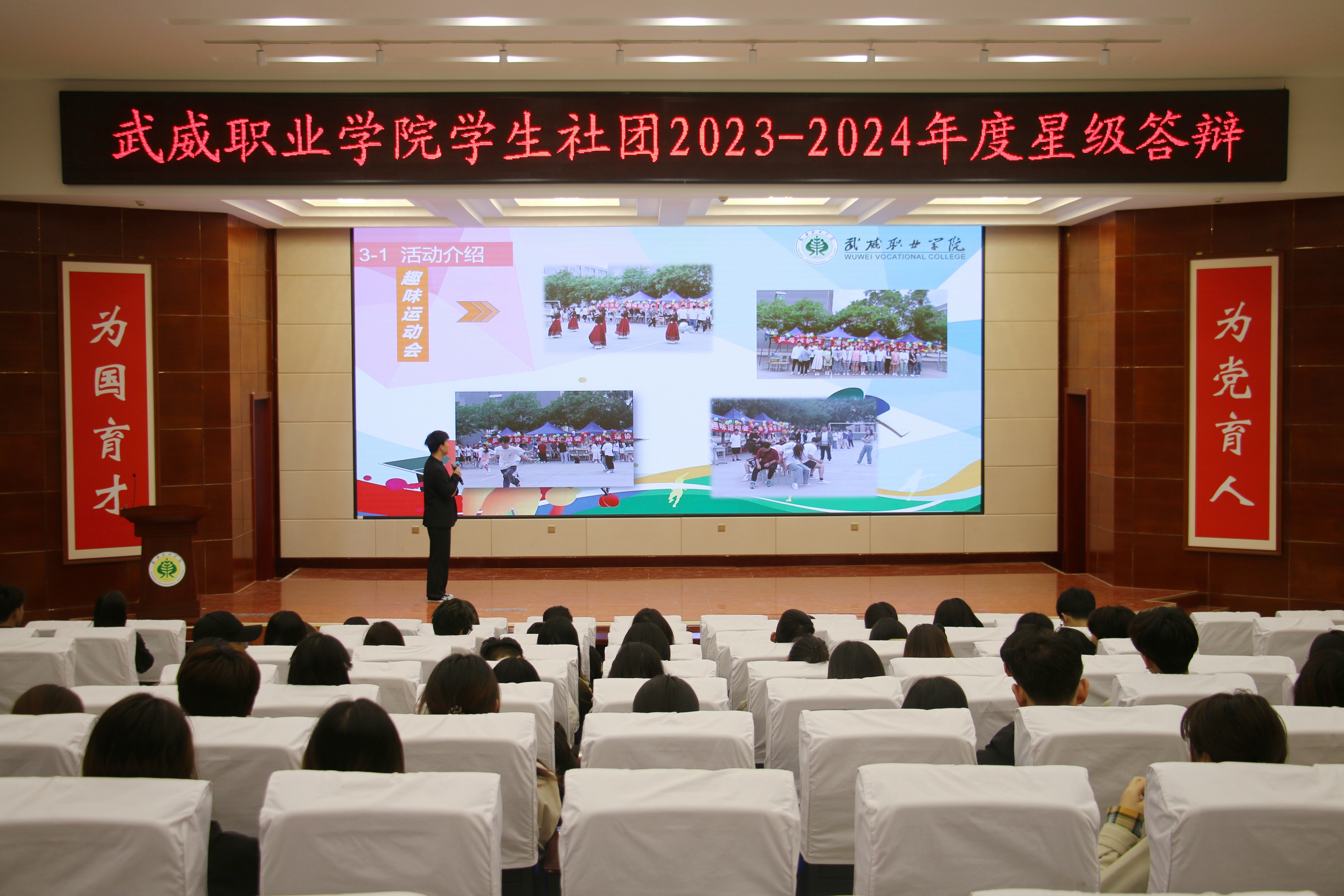 4月12日,學(xué)校在菁英廳舉辦了2023年度學(xué)生社團星級答辯會。答辯現(xiàn)場,各學(xué)生社團負責(zé)人通過PPT介紹了從基本情況、活動開展、品牌創(chuàng)新以及未來規(guī)劃等方面進行答辯展示。其中,新思想學(xué)習(xí)社、大學(xué)生攻鼓子藝術(shù)團等思想引領(lǐng)類社團展示了文化沙龍、藝術(shù)展演等活動情況;藍天愛心協(xié)會、大學(xué)生就業(yè)創(chuàng)業(yè)促進會等素質(zhì)拓展型社團展示了愛心幫扶、就業(yè)創(chuàng)業(yè)等活動;青春健康同伴社、心翼心理協(xié)會等健康類社團展示了健康防艾、心理咨詢等特色活動;朝陽武術(shù)協(xié)會、羽毛球協(xié)會、乒乓球協(xié)會等體育競技類社團展示了促進大學(xué)生健康和興趣培養(yǎng)方面的體育文化活動。最后,通過現(xiàn)場答辯、審核資料、社團互評等方面綜合考量,評選出五星級學(xué)生社團2個,四星級學(xué)生社團4個,三星級社團6個。