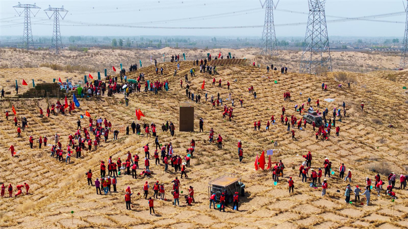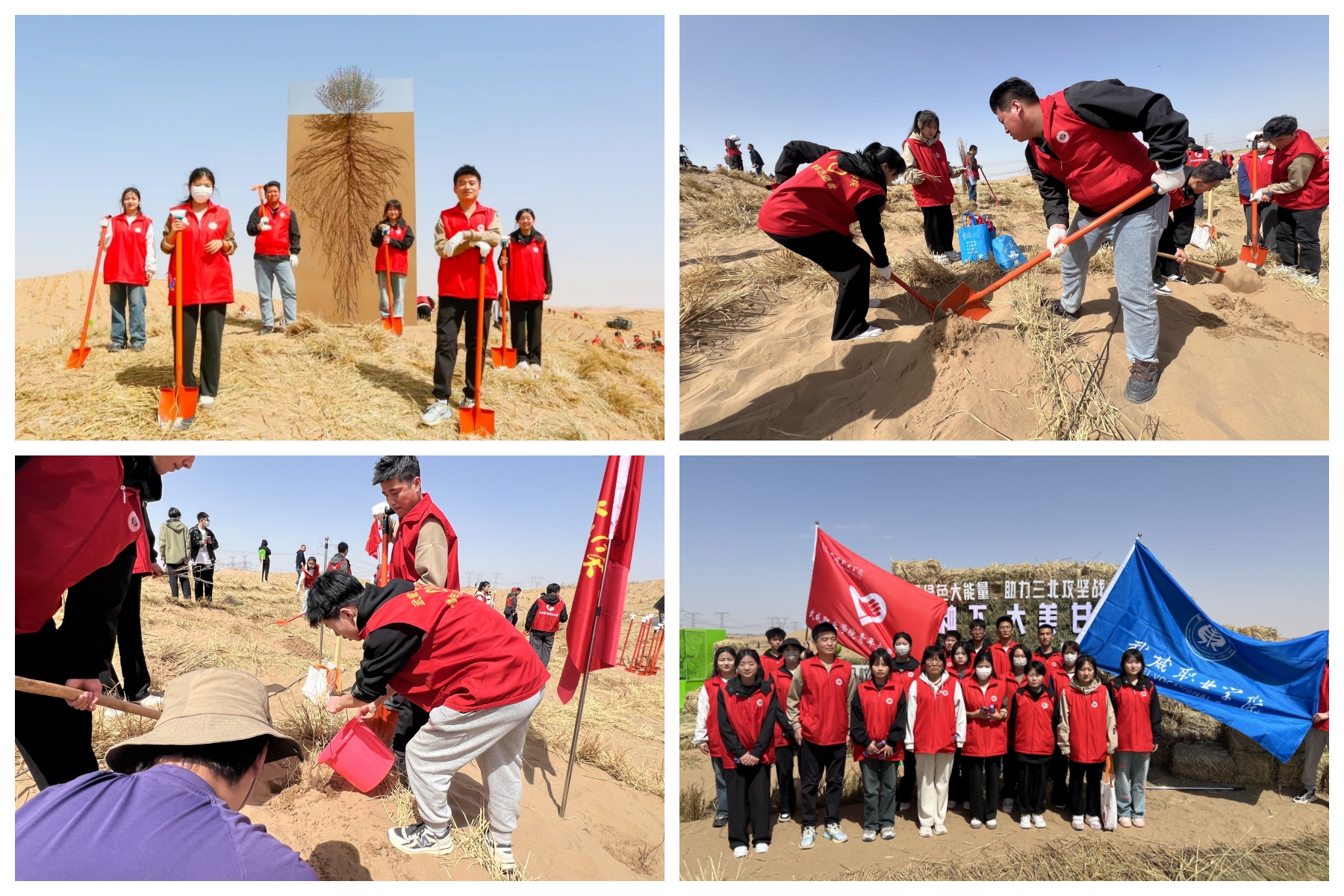 活動(dòng)期間,甘肅省林草局與螞蟻集團(tuán)簽訂戰(zhàn)略合作框架協(xié)議,螞蟻集團(tuán)通過公益項(xiàng)目“螞蟻森林”支持甘肅省大規(guī)模國土綠化,助力甘肅“三北”工程建設(shè)。學(xué)校青年志愿者與社會(huì)各界300余代表和志愿者各方代表在長城鎮(zhèn)大灣村開展2024年螞蟻森林春種行動(dòng),共同栽植沙生灌木花棒林。