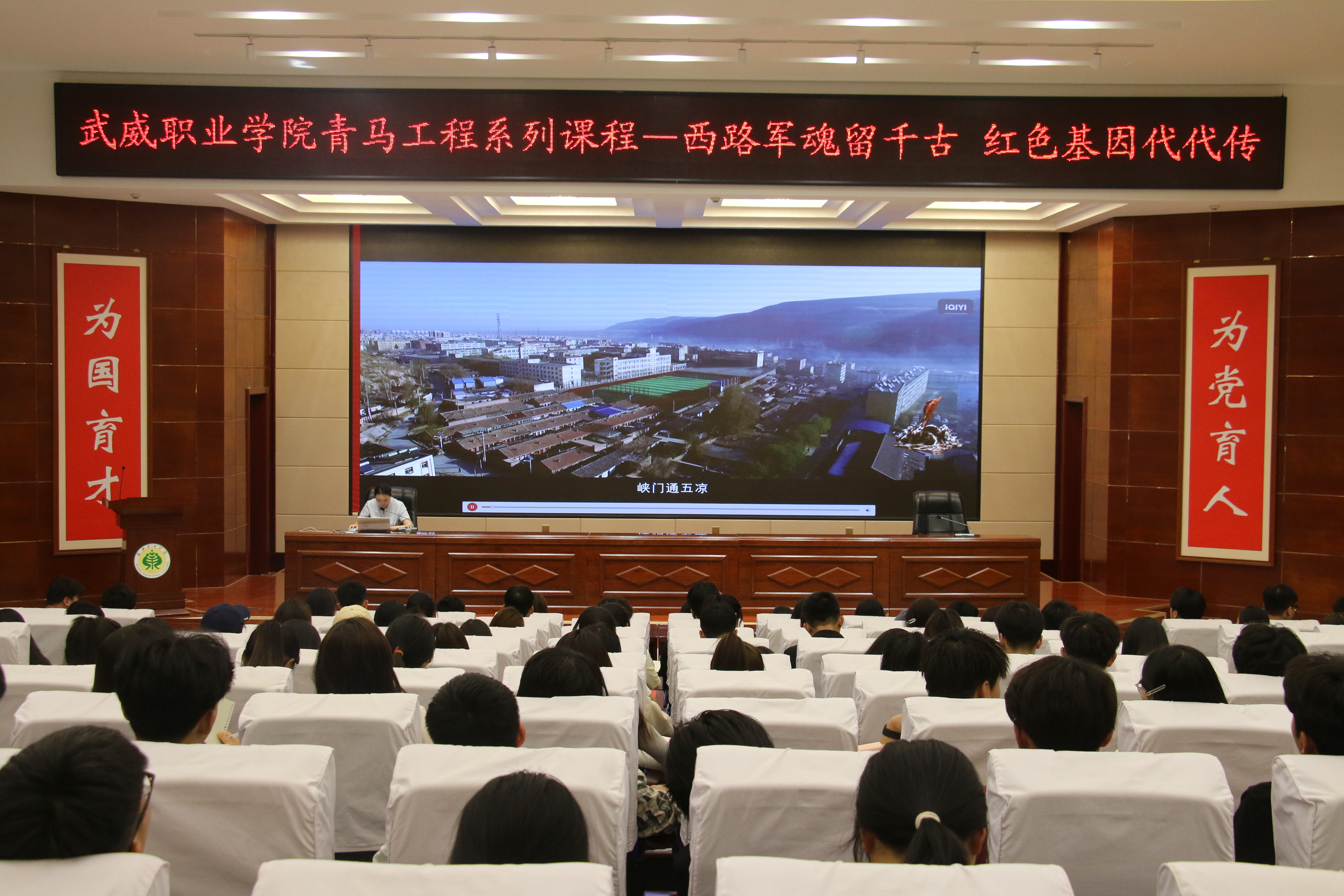 活動現(xiàn)場,武威市博物館金牌講解員王雅琪為在場學員作了題為《西路軍魂留千古 紅色基因代代傳》的專題講座,通過一個個動人的故事,一幅幅珍貴的畫面,生動展示了紅軍西路軍浴血奮戰(zhàn)的英雄史詩,跟隨講解員深情的聲音,同學們的思緒也再次踏上革命先輩們血與火的征程,追憶那段風云激蕩的歷史,感受西路軍英勇頑強不怕犧牲的革命英雄主義氣概。