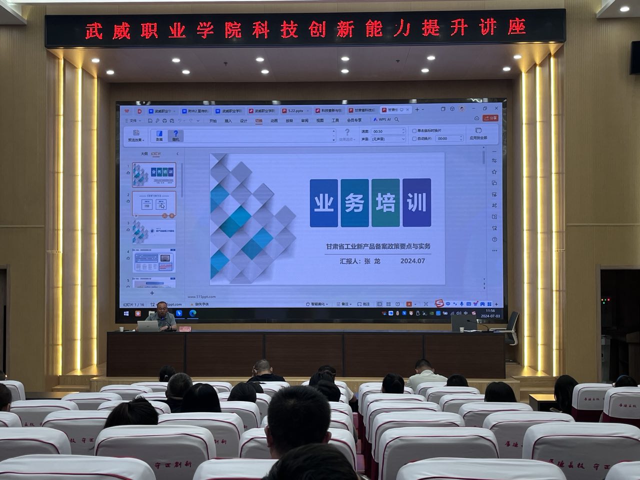 為進一步提升學校教師科研創(chuàng)新能力,掌握科技成果評價及新產(chǎn)品備案實施細則,7月3日上午,科技處邀請了甘肅省科學技術(shù)情報研究所專家蘇海龍和張龍研究員來我校開展科研專題講座。教師們積極踴躍參加講座,認真聆聽,收獲頗豐。
