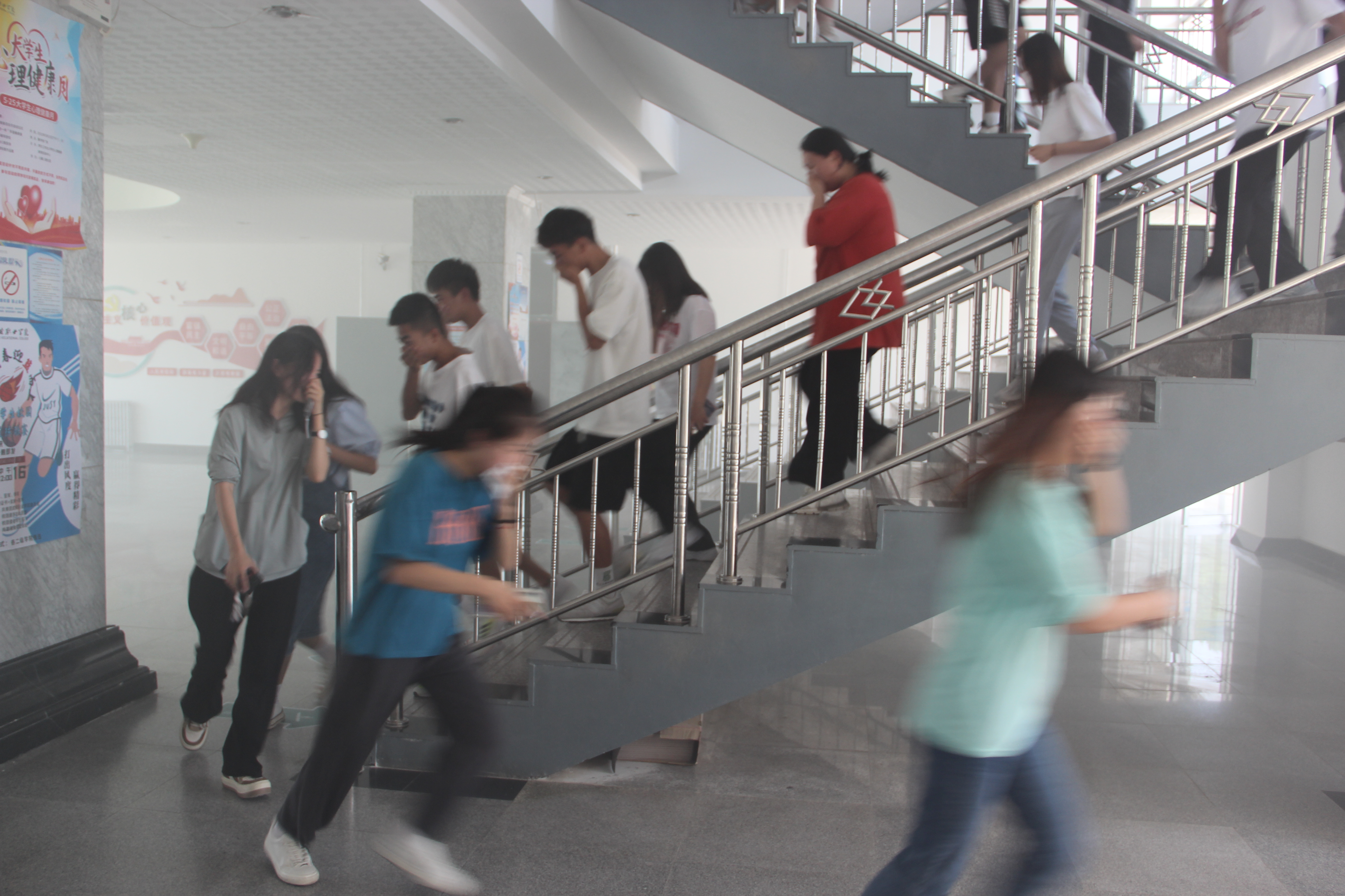 6月24日下午4點46分,學校應(yīng)急疏散演練正式開始。隨著消防警報響起,上課教師立即停止上課組織學生疏散,學生用毛巾捂住口鼻,在學工人員的指揮下,按照逃生路線迅速有序疏散。在5分鐘內(nèi),8000多名師生全部按指要求撤離到指定區(qū)域集合,演練取得圓滿成功。