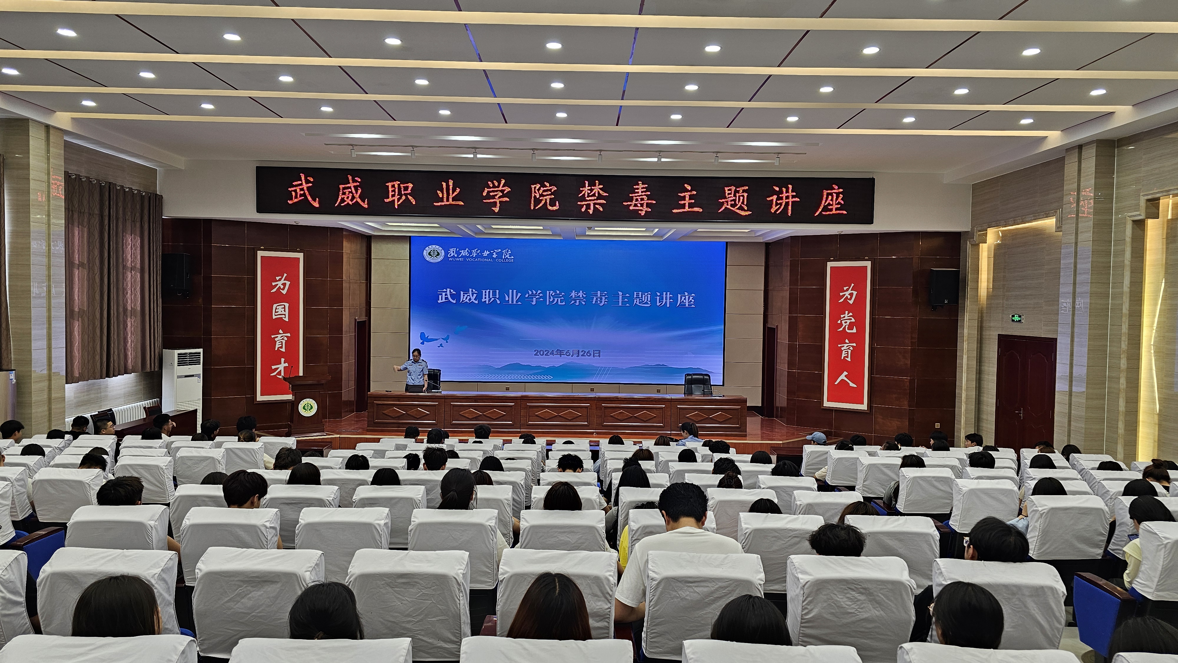 6月26日下午,學(xué)校邀請涼州區(qū)公安局西關(guān)派出所阮慧萍警官以《防范藥品濫用,護航無毒青春》為主題作了講座,各二級學(xué)院輔導(dǎo)員及學(xué)生代表200余人聆聽講座。講座由安全保衛(wèi)處副處長康興奎主持。