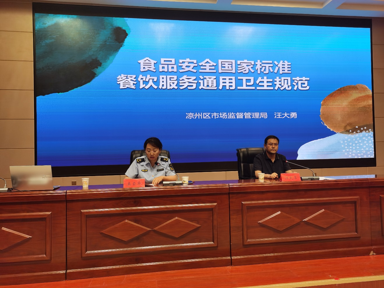 為加強學校食品安全管理,提升從業(yè)人員食品安全意識和服務水平,強化操作流程規(guī)范化、嚴格化、制度化和日常行為習慣養(yǎng)成,切實做好學校師生飲食安全保障工作。7月13日,學校邀請涼州區(qū)市場監(jiān)督管理局副局長汪大勇同志對學校食堂從業(yè)人員進行食品安全知識培訓,學校食堂相關(guān)經(jīng)營單位負責人和從業(yè)人員180多人參加了培訓。會議由學校黨委委員、副校長王永緒同志主持。
