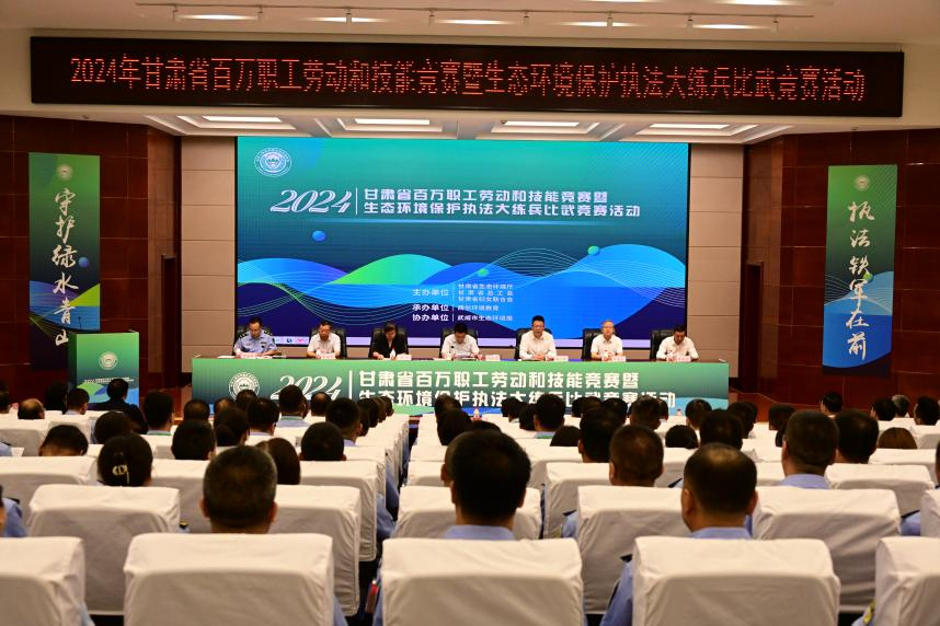 9月3日上午,由甘肅省生態(tài)環(huán)境廳、甘肅省總工會(huì)、甘肅省婦女聯(lián)合會(huì)主辦,武威市生態(tài)環(huán)境局協(xié)辦的甘肅省生態(tài)環(huán)境保護(hù)執(zhí)法大練兵比武競(jìng)賽活動(dòng)在學(xué)校菁英廳開(kāi)幕,甘肅省生態(tài)環(huán)境廳副廳長(zhǎng)劉文璽、省司法廳副廳長(zhǎng)何雯、省婦聯(lián)一級(jí)巡視員崔海華、武威市人民政府副市長(zhǎng)陳一夫、市生態(tài)局局長(zhǎng)張有恒、學(xué)校黨委書(shū)記王宏、校長(zhǎng)、黨委副書(shū)記張開(kāi)禮,省生態(tài)環(huán)境廳、省總工會(huì)、省婦聯(lián)、省司法廳、武威市人民政府有關(guān)領(lǐng)導(dǎo),省生態(tài)環(huán)境廳機(jī)關(guān)處室、直屬單位相關(guān)負(fù)責(zé)同志,武威市生態(tài)環(huán)境局、學(xué)校考試培訓(xùn)中心等單位負(fù)責(zé)同志共100余人參加了開(kāi)幕式。