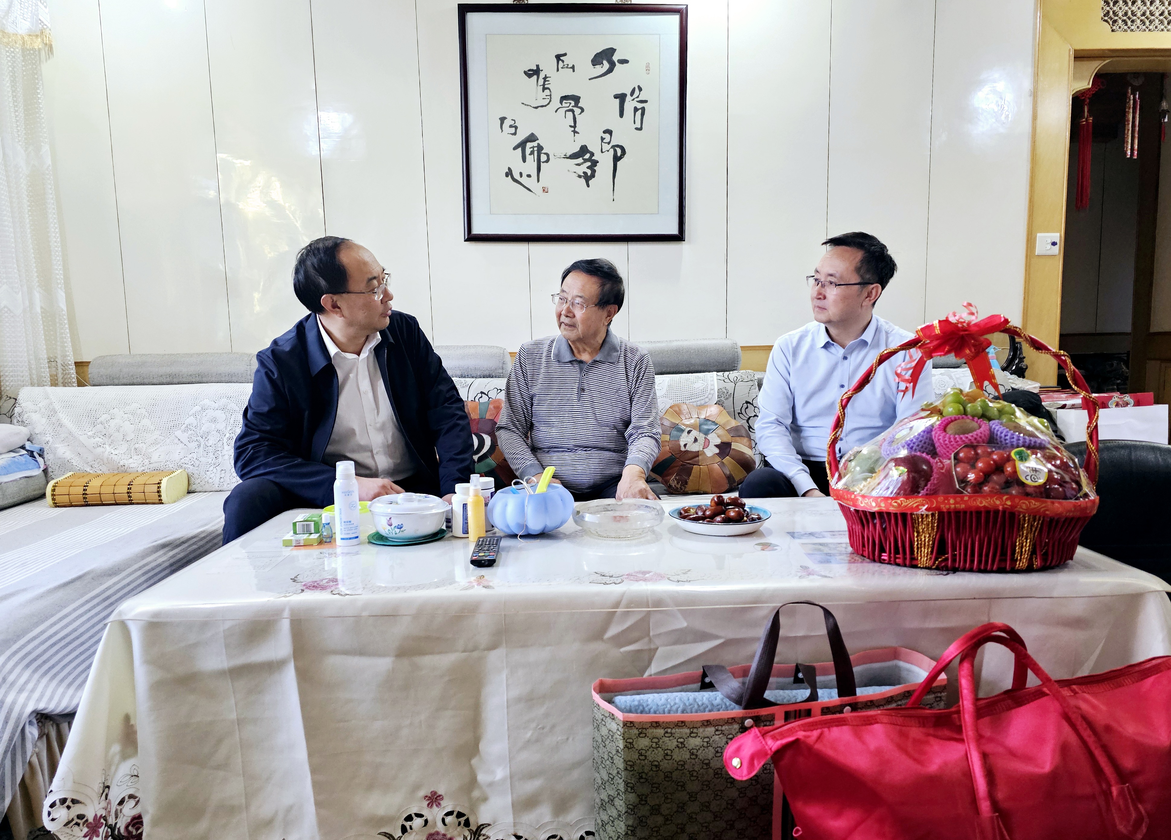 走訪中,慰問組與退休老干部及家屬促膝交談,通過拉家常、聊健康、談發(fā)展的方式,認(rèn)真傾聽他們的身體及生活狀況和服務(wù)需求,對(duì)老干部們提出的疑問當(dāng)面進(jìn)行解答,并感謝他們對(duì)學(xué)校發(fā)展和建設(shè)作出的貢獻(xiàn)。