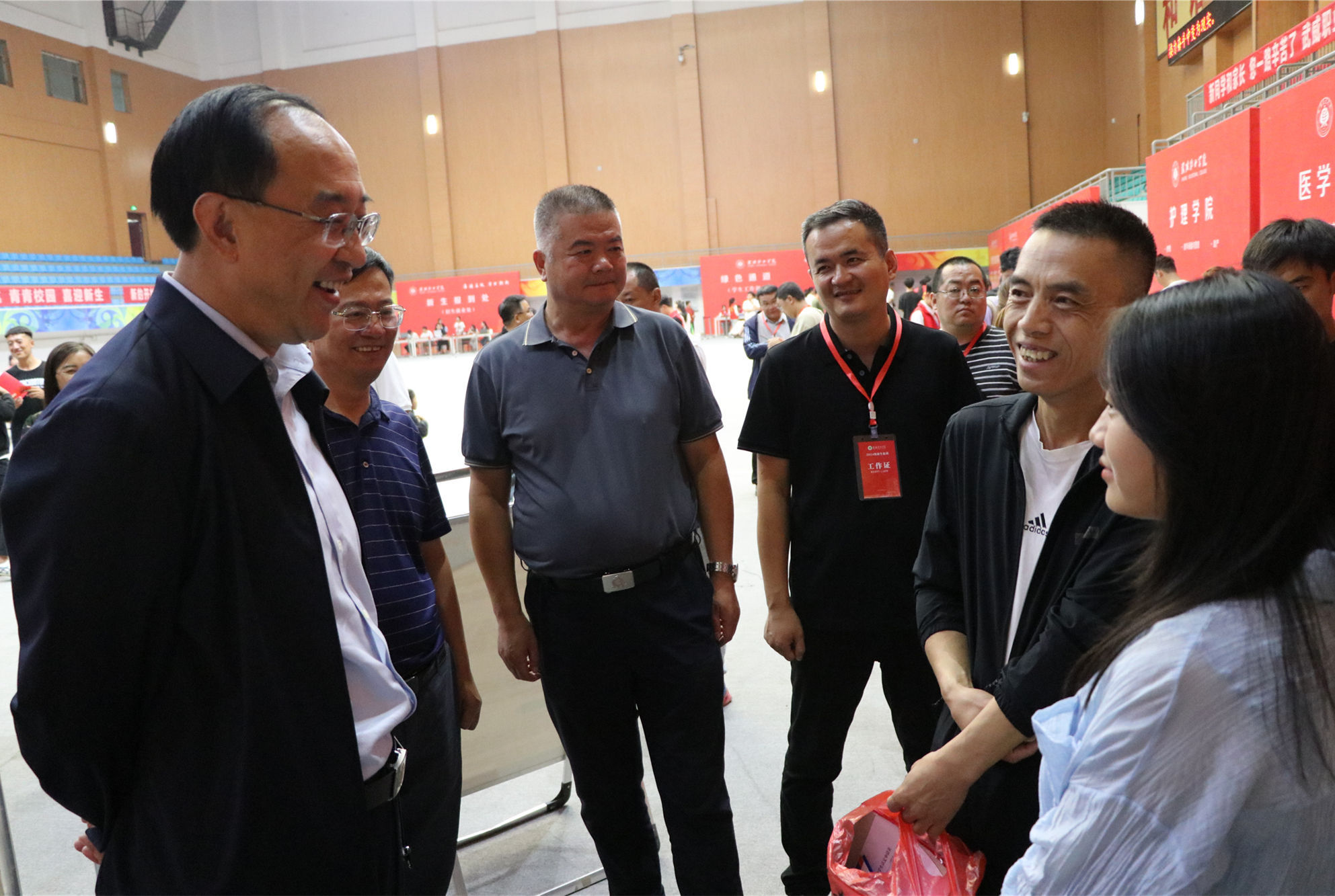 8月31日,是武威職業(yè)學(xué)院2024級新生報到第一天。校園里精心布置的迎新點(diǎn)和志愿者們親切熱情的笑臉,讓遠(yuǎn)道而來的2024級新生及家長感到陣陣溫暖。上午9點(diǎn),學(xué)校黨委書記王宏,黨委副書記、校長張開禮,黨委委員、副校長王守云到學(xué)校體育館迎新現(xiàn)場走訪慰問,并與現(xiàn)場新生、家長及師生志愿者親切交流。