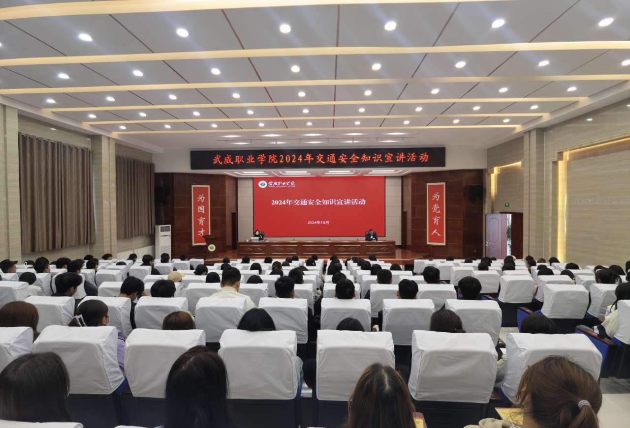 為進一步推進平安校園建設(shè),增強師生的交通安全意識,預(yù)防和減少交通事故的發(fā)生。10月24日,學(xué)校邀請武威市公安局交警支隊王穎警官來學(xué)校開展交通安全知識宣講活動,為師生們帶來了一堂深刻的交通安全警示課。宣講活動由安全保衛(wèi)處處長李欣主持。