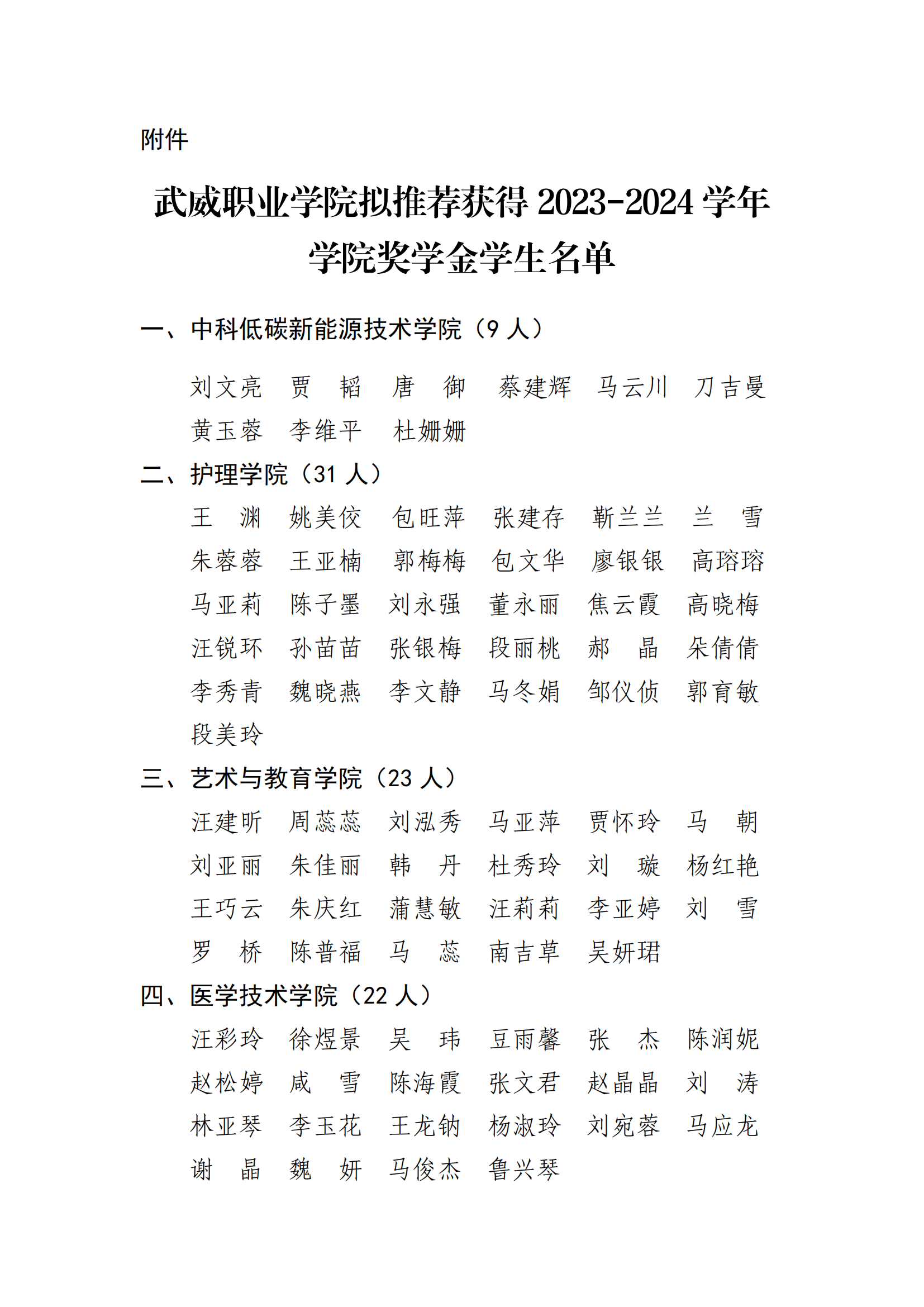 武威職業(yè)學(xué)院關(guān)于2023-2024學(xué)年學(xué)院獎(jiǎng)學(xué)金評(píng)選結(jié)果的公示