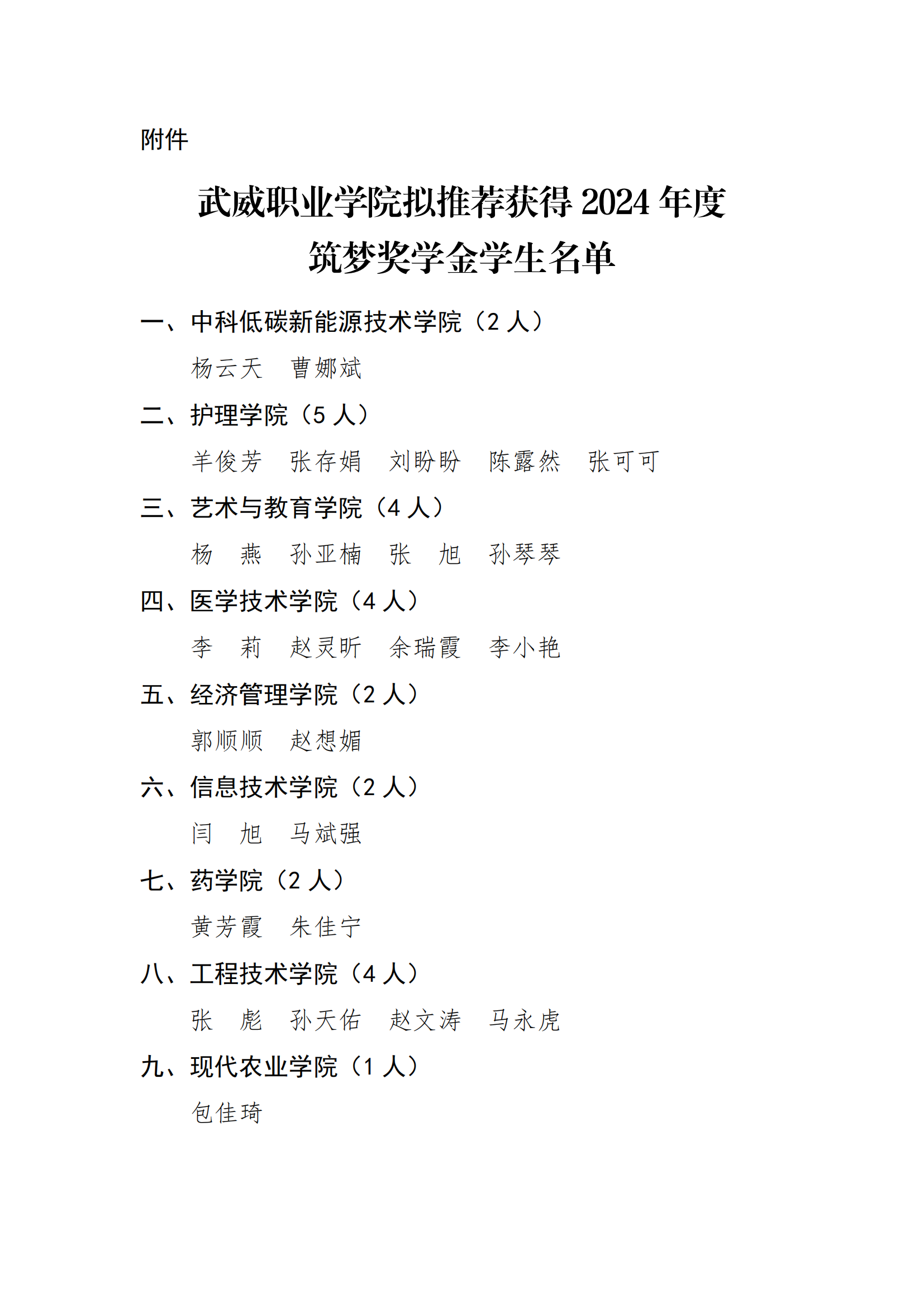武威職業(yè)學(xué)院關(guān)于2024年度筑夢(mèng)獎(jiǎng)學(xué)金評(píng)選結(jié)果的公示