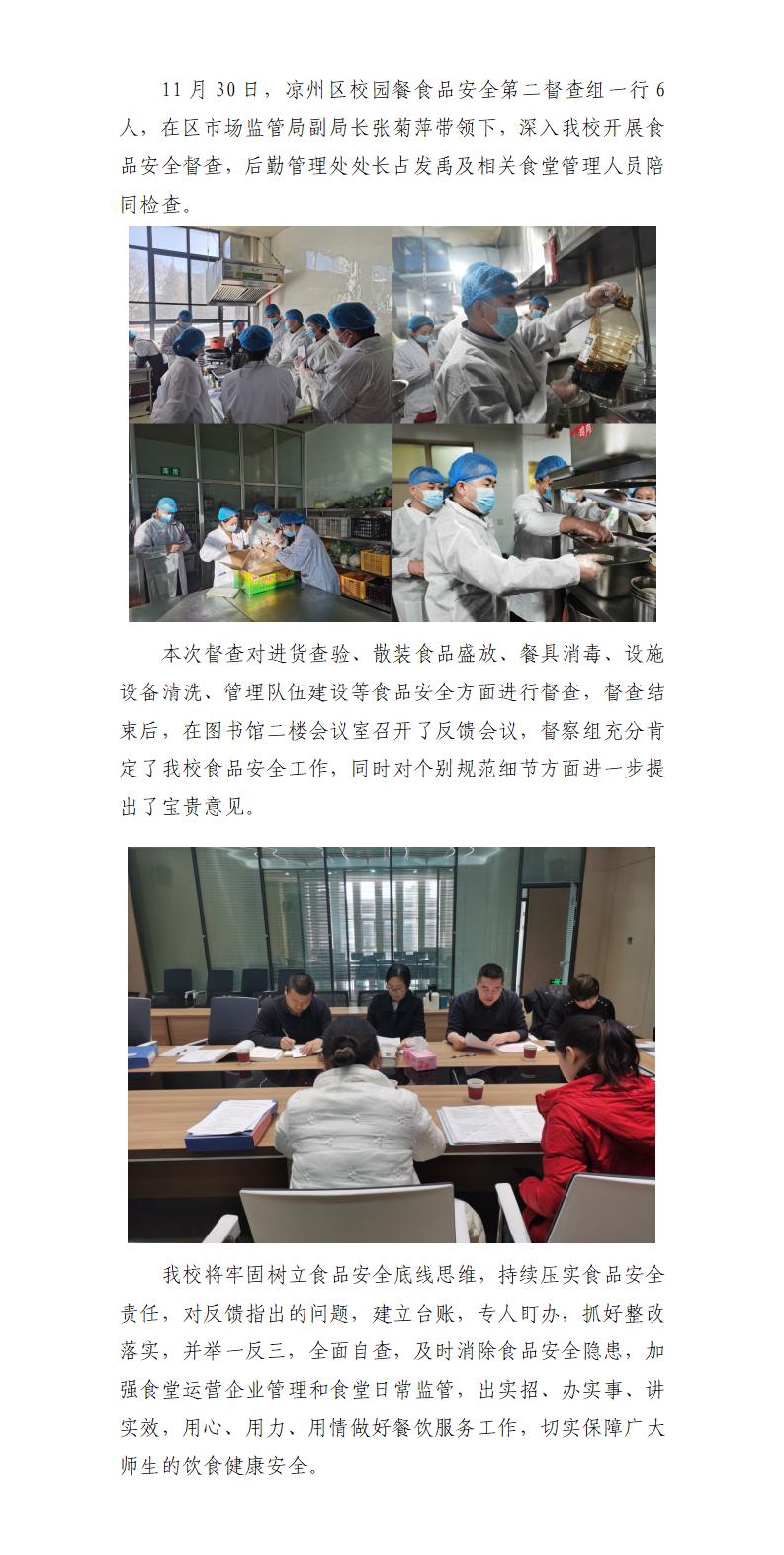 涼州區(qū)校園餐食品安全第二督查組來(lái)我校開(kāi)展食品安全專(zhuān)項(xiàng)督查