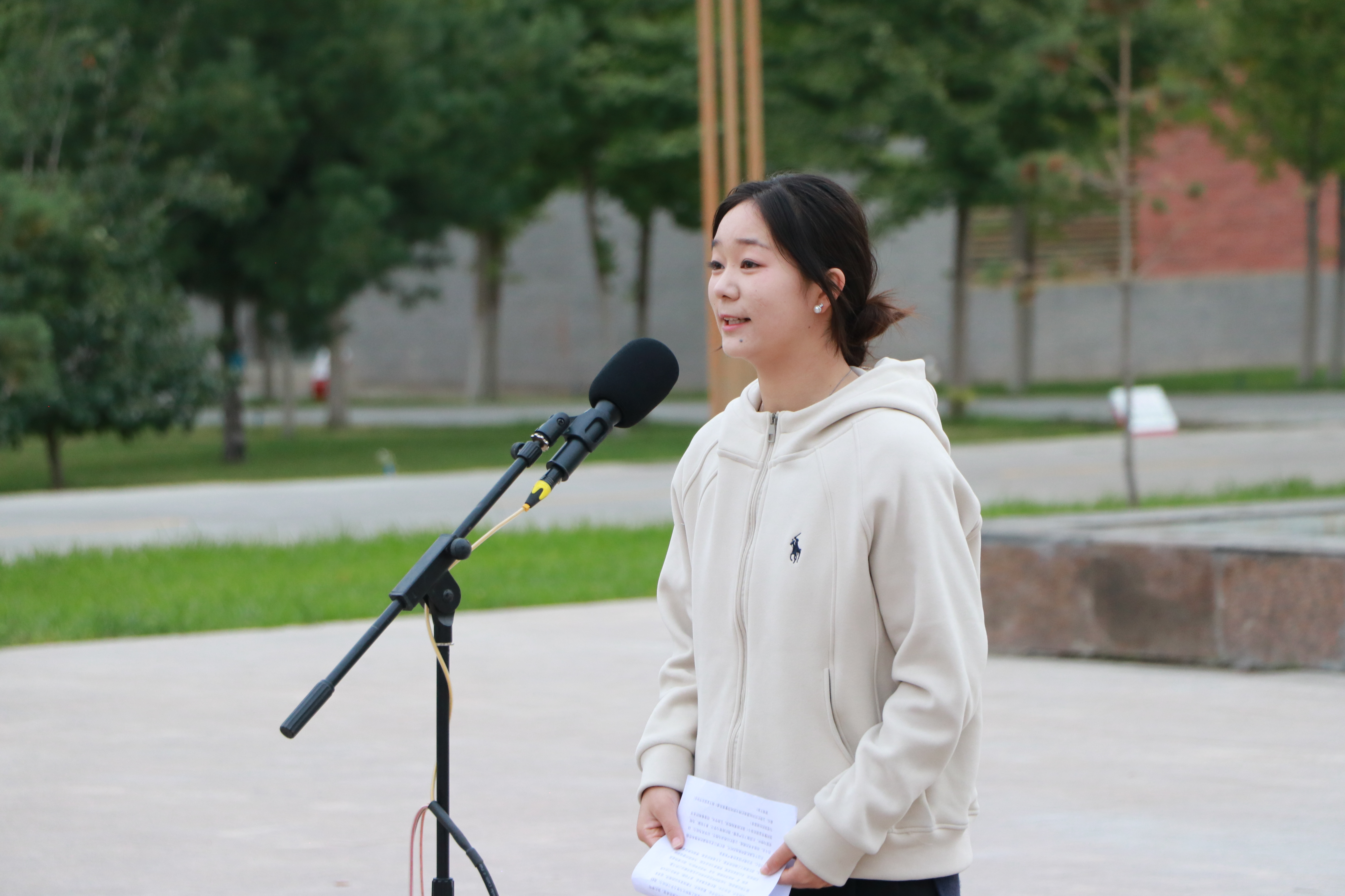優(yōu)秀學(xué)生代表、藝術(shù)與教育學(xué)院2023級(jí)學(xué)前教育專業(yè)的馬青妍同學(xué)進(jìn)行了國(guó)旗下的演講,她的演講激勵(lì)著在場(chǎng)的每一個(gè)人,表達(dá)了對(duì)祖國(guó)的熱愛(ài)和對(duì)未來(lái)的期許。