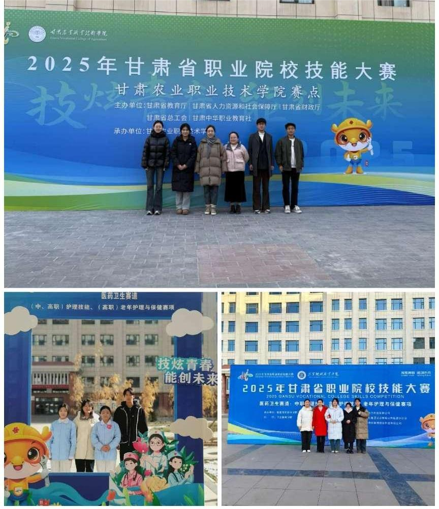 近日,由甘肅省教育廳、人社廳、財政廳等5部門主辦的2025年全省職業(yè)院校技能大賽圓滿閉幕。我院共有5組師生分別參加了臨夏現(xiàn)代職業(yè)學院賽點醫(yī)藥衛(wèi)生賽道中護理技能與老年護理與保健賽項、甘肅農(nóng)業(yè)職業(yè)技術學院賽點公共管理組健康養(yǎng)老照護賽項。