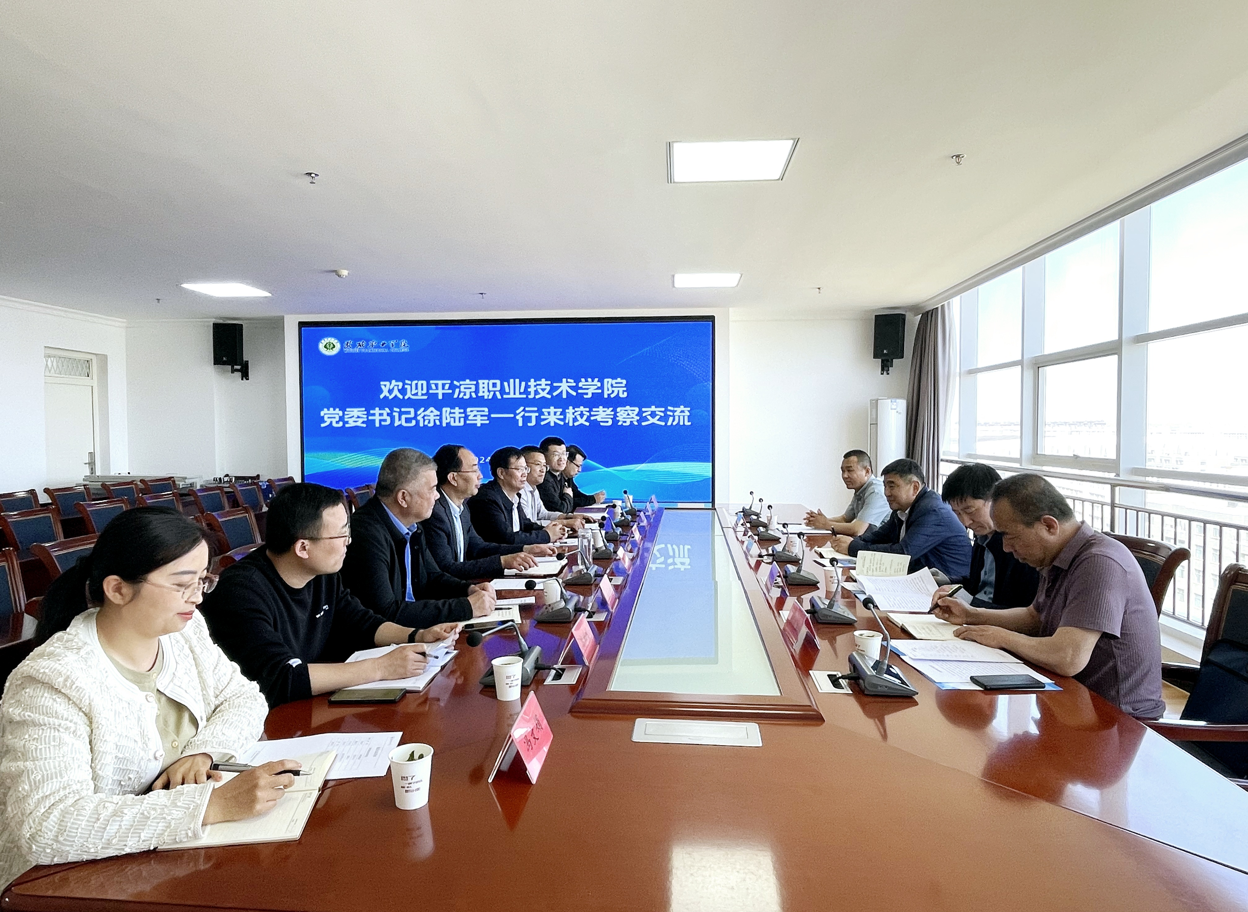 平?jīng)雎殬I(yè)技術(shù)學(xué)院黨委書(shū)記徐陸軍一行來(lái)??疾旖涣?/font>
