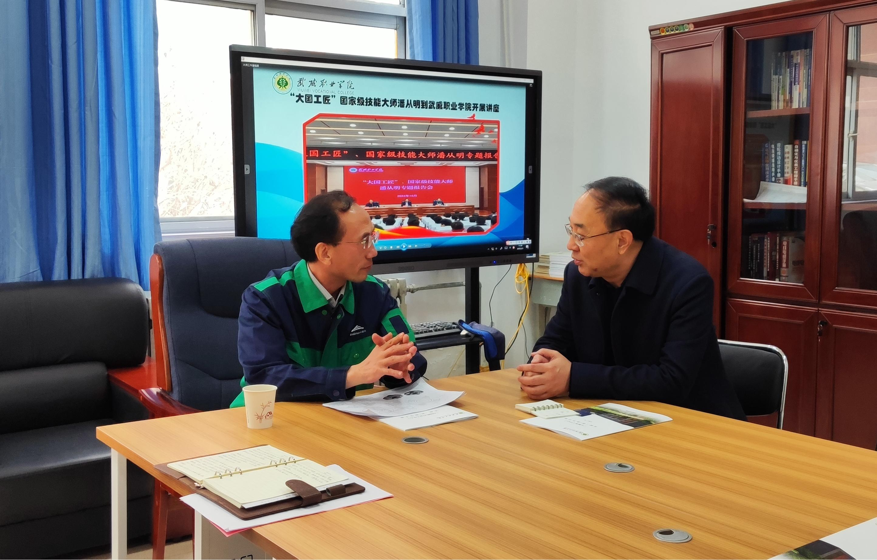 講座后,潘從明來到學校智能制造實訓中心進行現(xiàn)場指導,認真聽取了實訓中心的實訓場地、實訓裝備、實訓方式等情況,并與校領導及師生代表進行了深入交流。他勉勵師生傳承工匠精神,積極投身實踐,提高動手能力,在實踐中快速成長為高素質技術技能型人才。