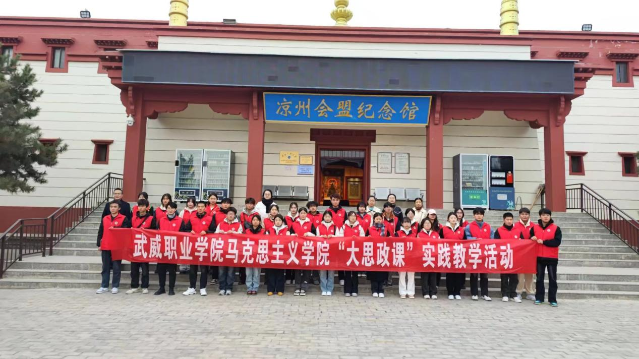 為深入貫徹落實習(xí)近平總書記關(guān)于“大思政課”的重要指示批示精神,厚植師生愛國主義情懷。11月15日,學(xué)校與涼州會盟紀(jì)念館共建“大思政課”實踐教學(xué)基地簽約掛牌儀式暨實踐教學(xué)活動在涼州會盟紀(jì)念館舉行,涼州會盟紀(jì)念館館長韓亮、副館長陳磊、學(xué)校師生代表參加了活動。馬克思主義學(xué)院副院長劉心主持活動。