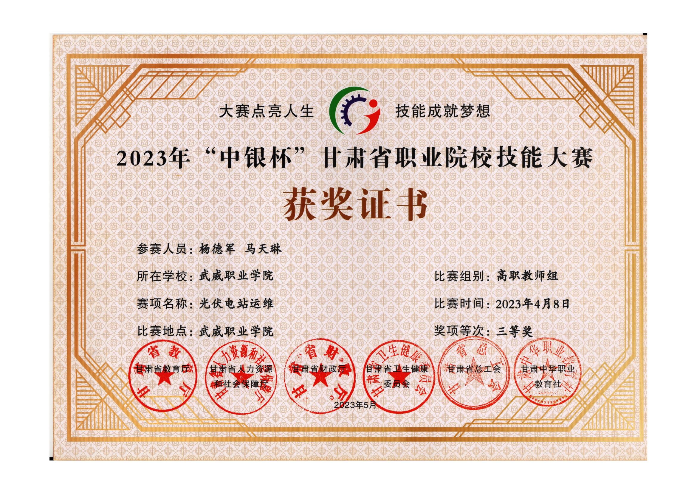 2023年甘肅省職業(yè)院校技能大賽光伏電站運(yùn)維賽項(xiàng)(高職教師組)獲獎(jiǎng)情況