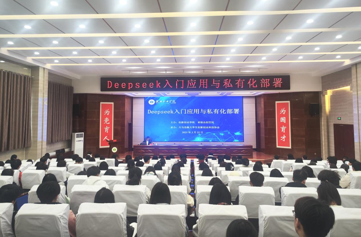 為深化校企合作、推動人工智能技術(shù)在職業(yè)教育與創(chuàng)新實踐中的應用,3月22日,創(chuàng)新創(chuàng)業(yè)學院特邀武威市大數(shù)據(jù)公司工程師劉曉寶,開展了“DeepSeek入門應用與私有化部署”專題培訓,學校200余名師生參加了培訓。