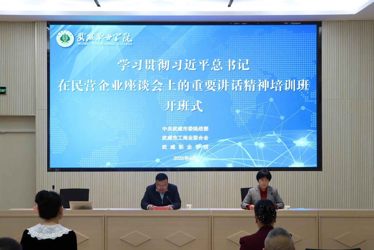 4月28日,由市委統(tǒng)戰(zhàn)部、市工商業(yè)聯(lián)合會主辦,我校承辦的深入學(xué)習(xí)貫徹習(xí)近平總書記在民營企業(yè)座談會上的重要講話精神培訓(xùn)班在學(xué)校圖書館二樓報告廳順利開班。市委統(tǒng)戰(zhàn)部副部長、市工商聯(lián)黨組書記、常務(wù)副主席白生光,學(xué)校黨委委員、副校長何毅出席開班式。市級各商會組織負(fù)責(zé)人、全市民營經(jīng)濟代表人士、市縣區(qū)黨委統(tǒng)戰(zhàn)部、工商聯(lián)代表共40人參加培訓(xùn)。