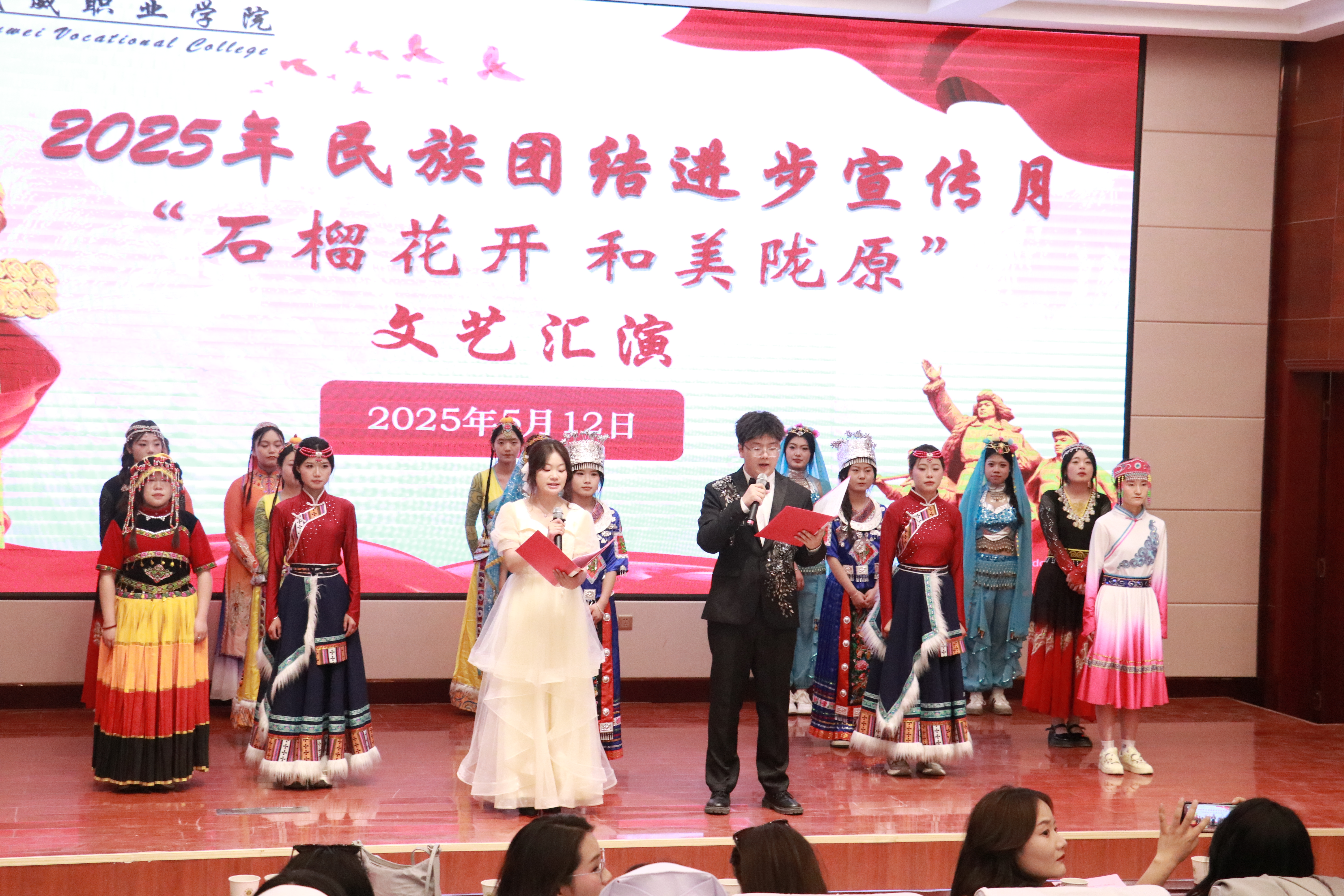 為深入貫徹落實(shí)黨的二十大精神,深化民族團(tuán)結(jié)進(jìn)步教育,鑄牢中華民族共同體意識(shí),5月12日,護(hù)理學(xué)院在學(xué)校菁英廳舉行2025年民族團(tuán)結(jié)進(jìn)步宣傳月“石榴花開,和美隴原”主題文藝匯演。學(xué)院黨總支書記黃文源、全體教職工和學(xué)生代表共200余人參加。