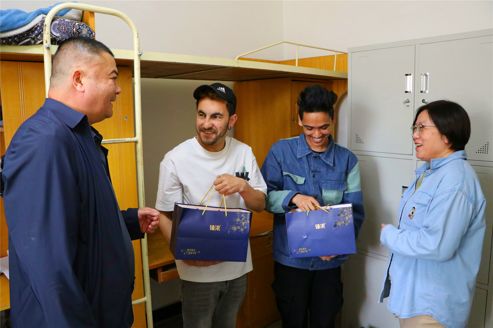 端午將至,為更好開展留學(xué)生教育管理工作,使我校來華留學(xué)生更好地認(rèn)識和體驗(yàn)中國傳統(tǒng)節(jié)日文化,5月30日,學(xué)校黨委副書記、副校長張開禮,黨委副書記翟存祥,黨委委員、副校長王守云一行與國際合作交流處全體工作人員走進(jìn)留學(xué)生公寓,給留學(xué)生們送去節(jié)日的關(guān)懷和溫暖。