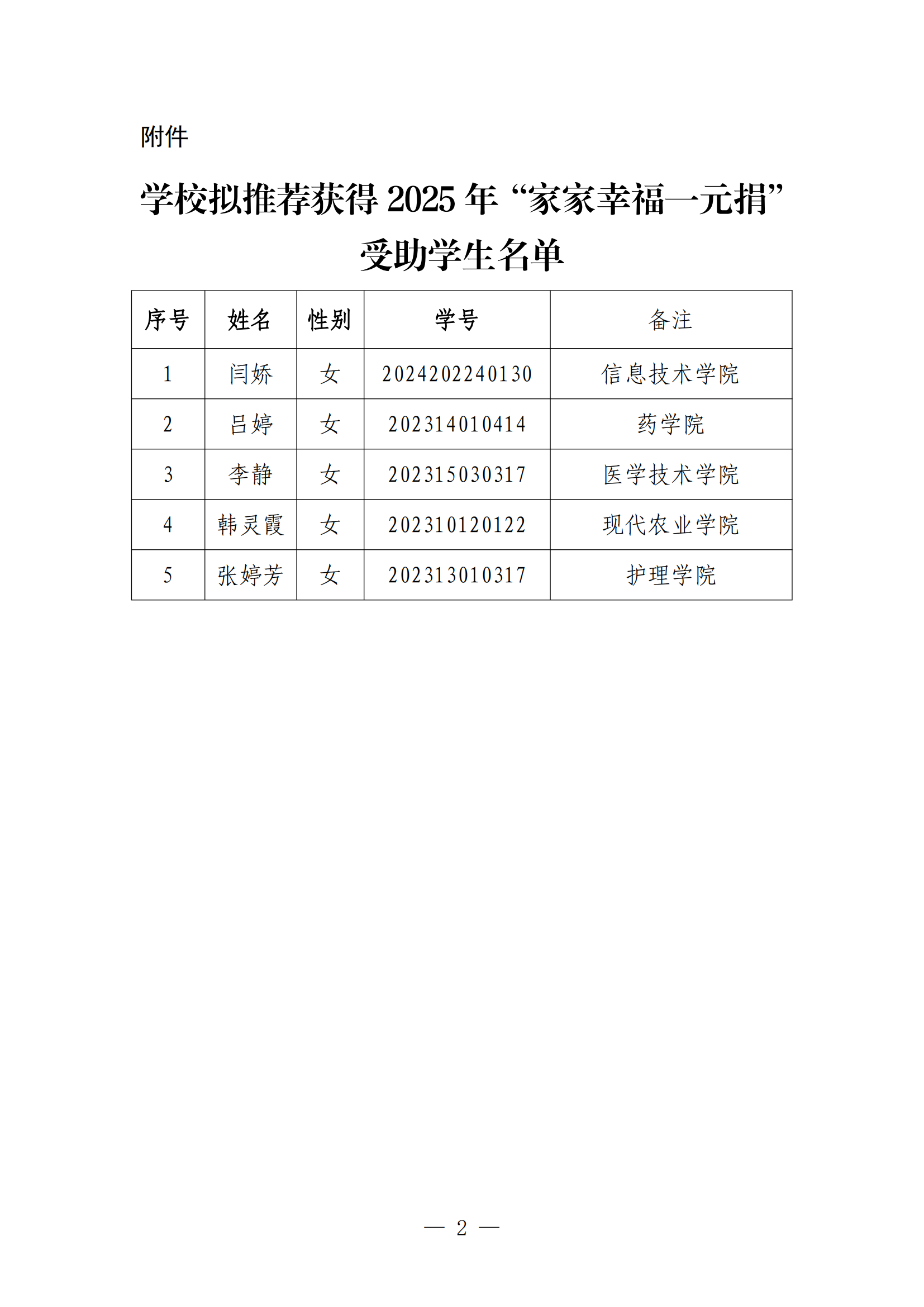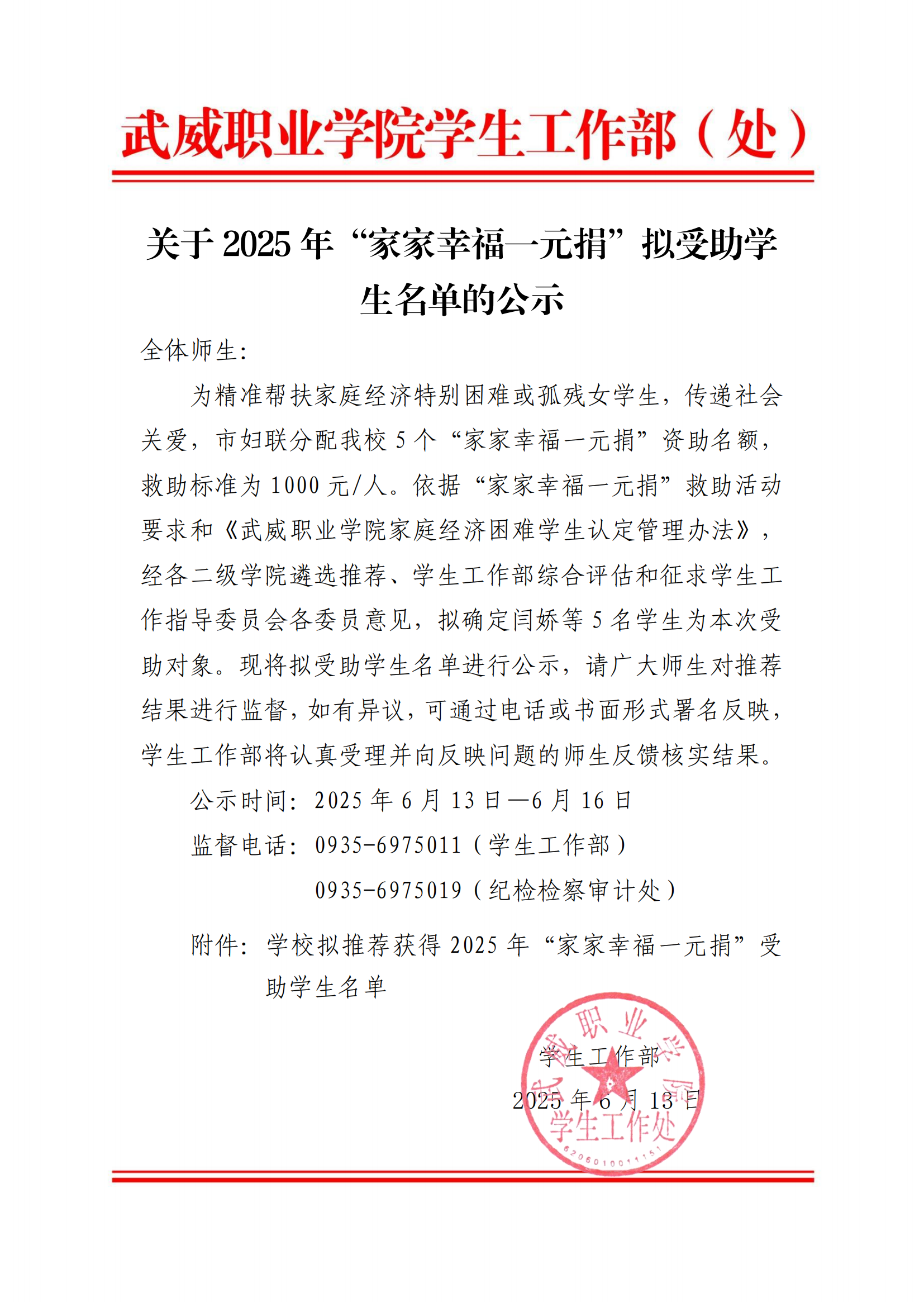 關于2025年“家家幸福一元捐”擬受助學生名單的公示