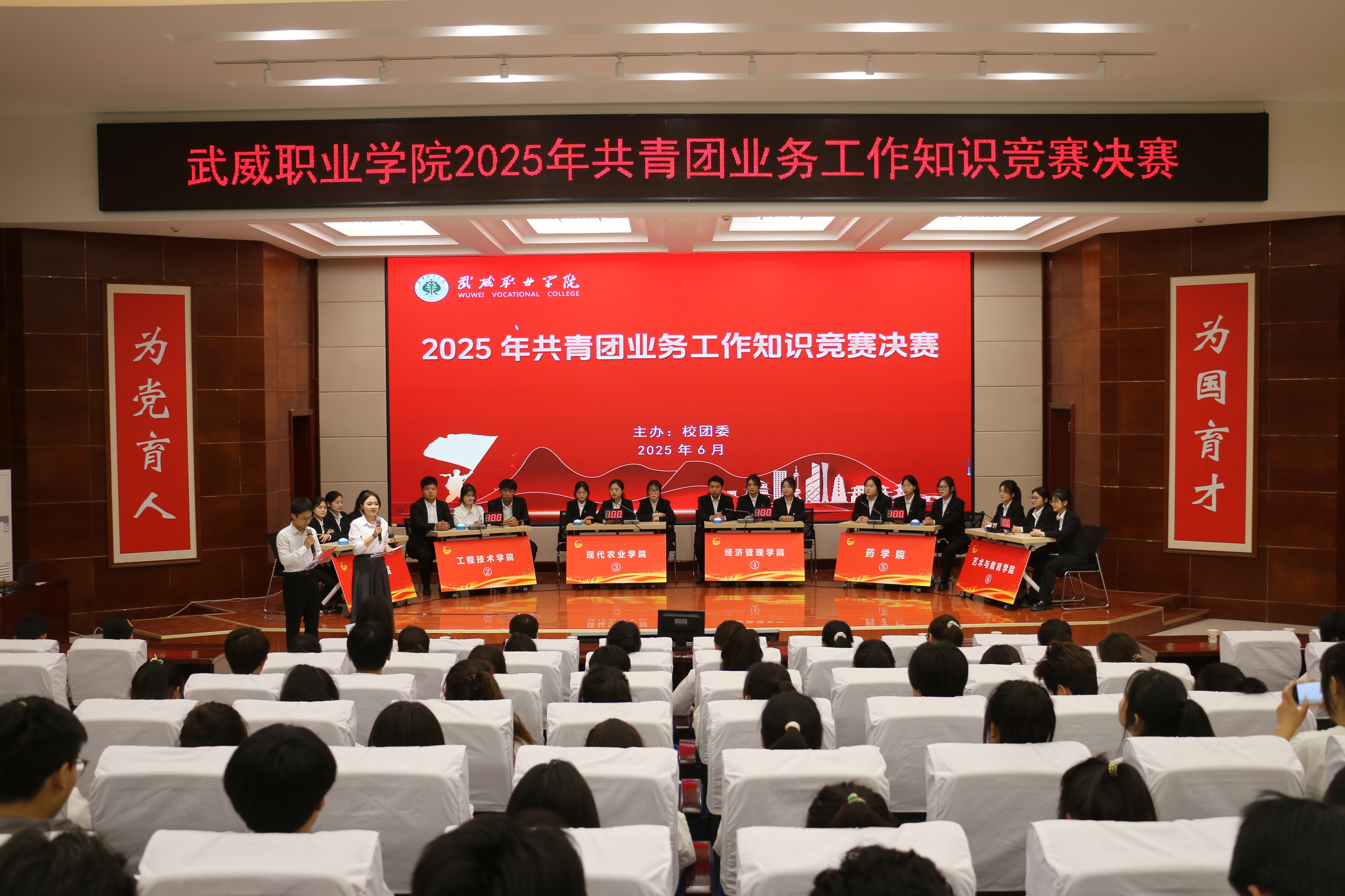 為進(jìn)一步提升基層團(tuán)干部業(yè)務(wù)知識(shí)水平,增強(qiáng)廣大團(tuán)員青年歷史使命感與責(zé)任感。6月13日,校團(tuán)委在菁英廳舉辦共青團(tuán)業(yè)務(wù)知識(shí)競(jìng)賽決賽,二級(jí)學(xué)院團(tuán)委書記及團(tuán)員代表200余人觀看比賽。