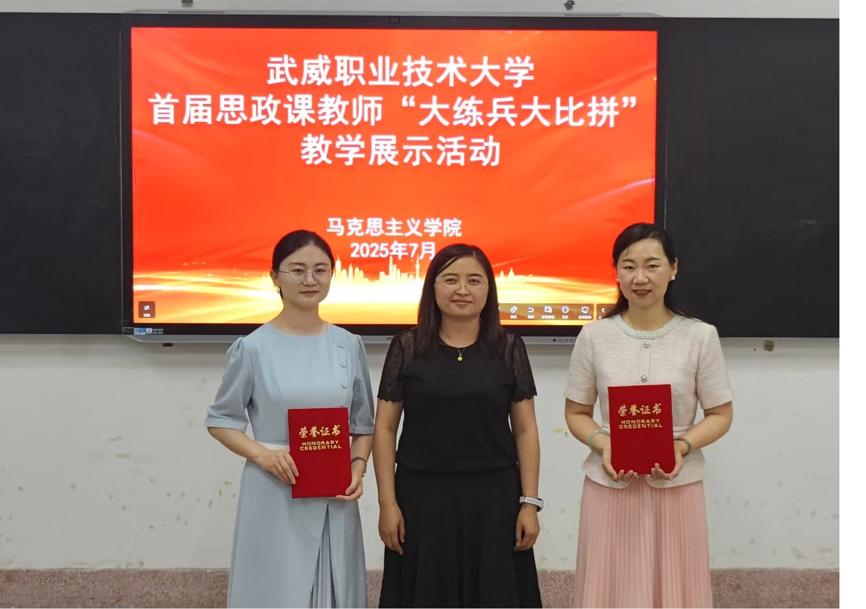 7月3日,武威職業(yè)技術(shù)大學(xué)首屆思政課教師“大練兵大比拼”教學(xué)展示活動在勵勤樓206教室成功舉辦?;顒又荚谕苿有聲r代思想政治理論課高質(zhì)量發(fā)展,提升思政課教師教學(xué)水平,打造高素質(zhì)思政課教師隊伍。