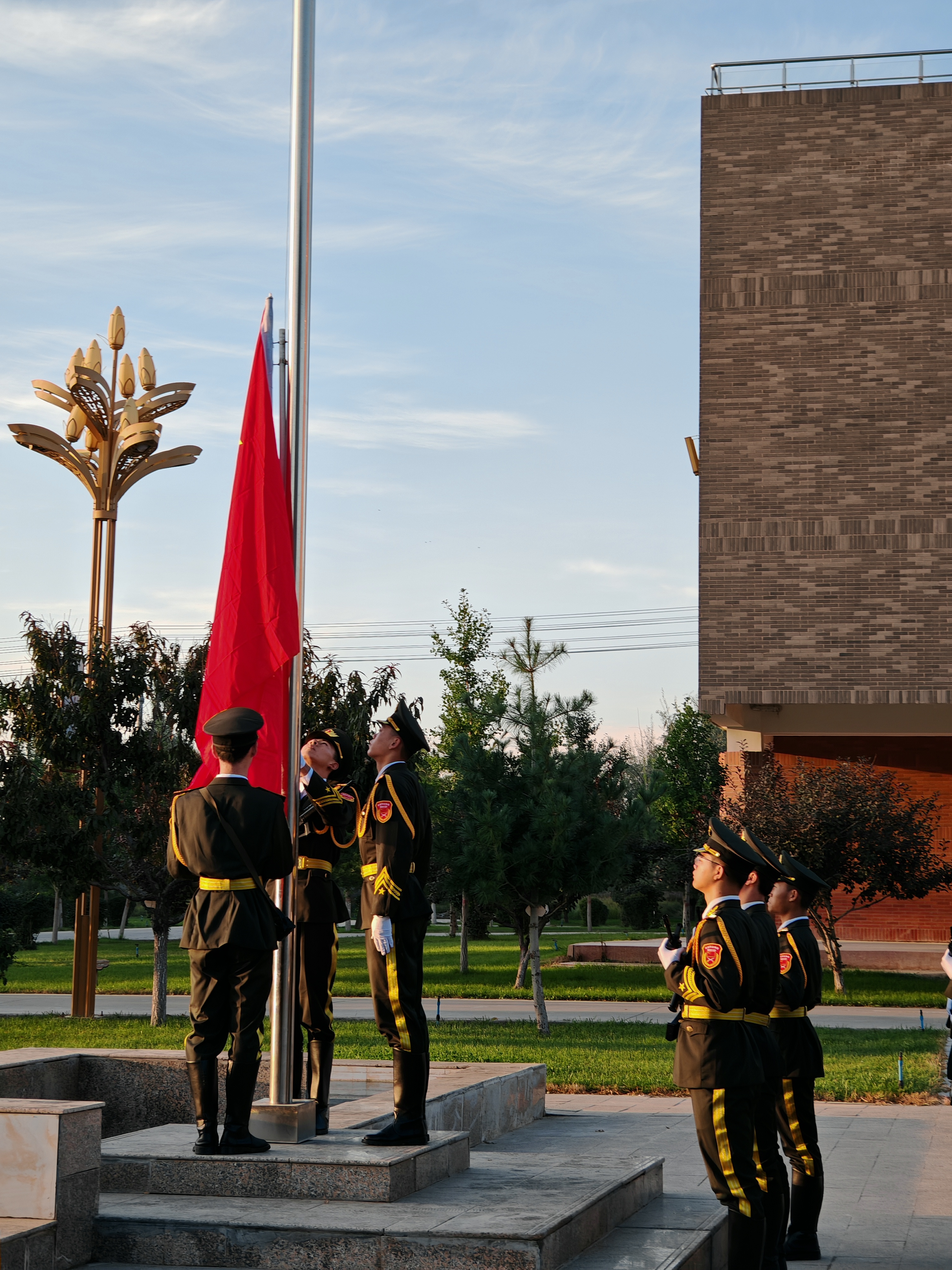 當《義勇軍進行曲》鏗鏘奏響,五星紅旗冉冉升起,每一道目光都堅定追隨,每一顆心都隨之激蕩。晨曦之中,國旗迎風揚起的不只是一抹紅,更是一份沉甸甸的民族自豪與時代使命。這一刻,沒有言語,卻有無聲的力量在凝聚;沒有口號,卻有熾熱的情感在流淌。昂揚的斗志被點燃,深厚的家國情懷在每一位在場師生心中自然生發(fā)。他們用注視表達著對祖國的敬意。