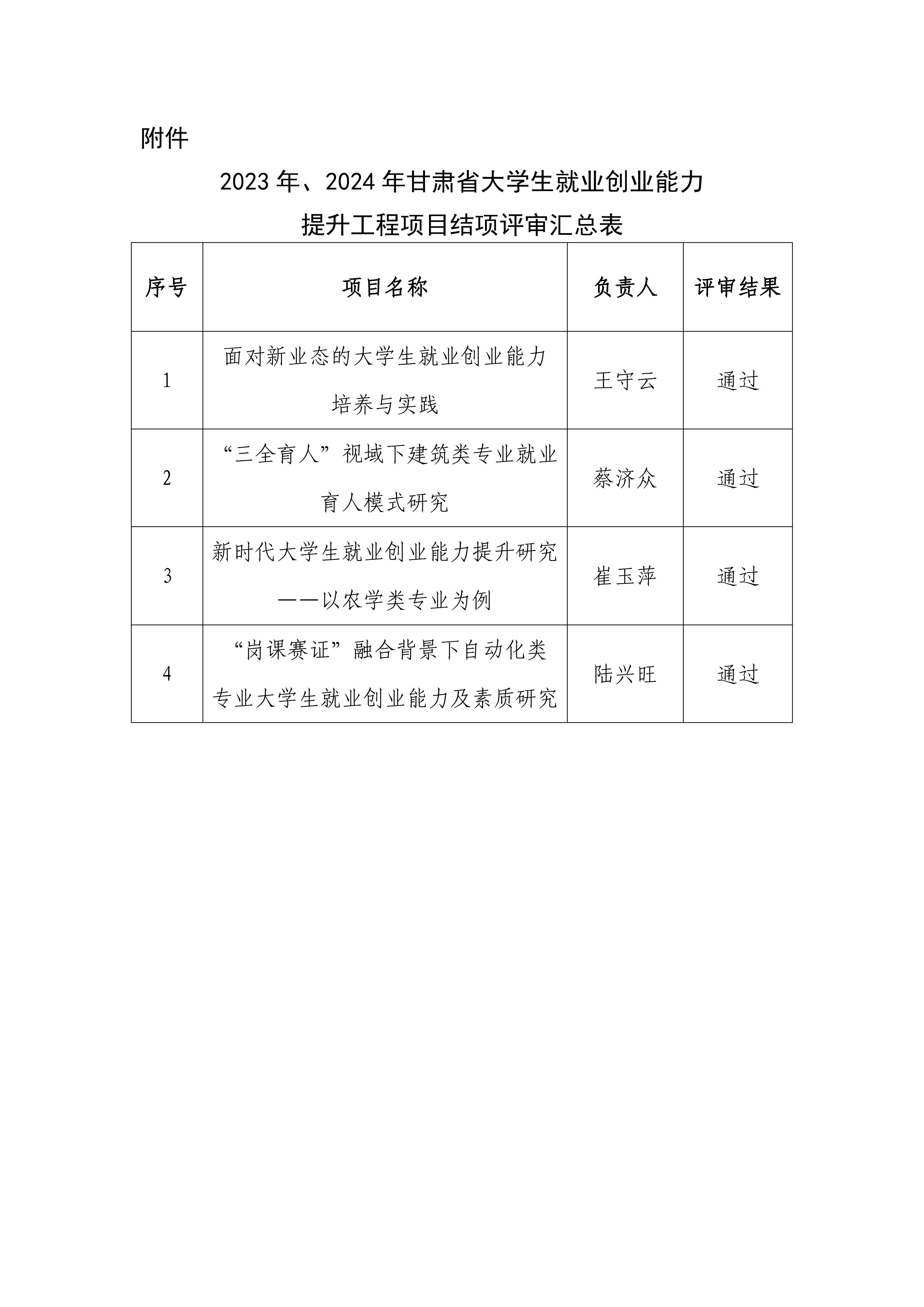 2023年、2024年甘肅省大學(xué)生就業(yè)創(chuàng)業(yè)能力提升工程項(xiàng)目結(jié)項(xiàng)評(píng)審結(jié)果公示