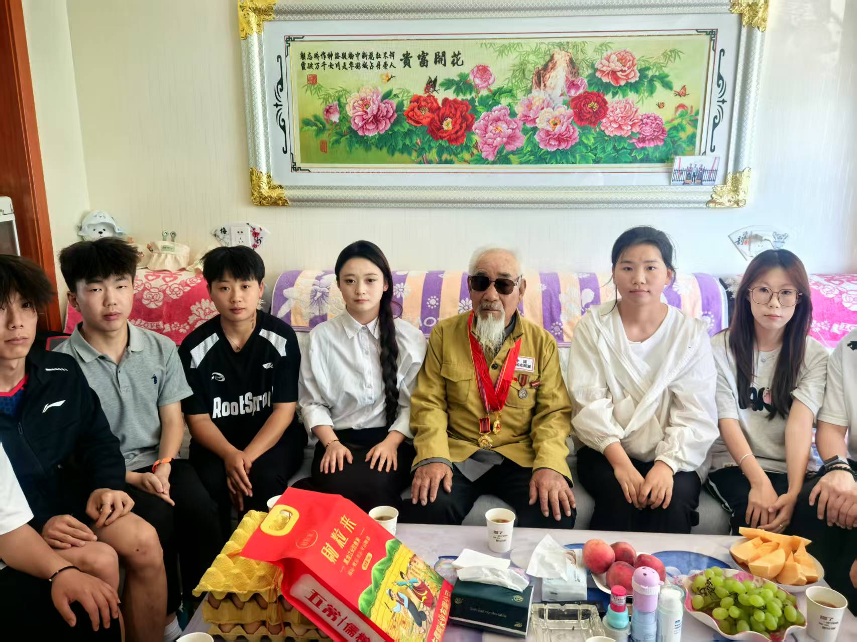 現(xiàn)居住于康寧新村八組、已93歲高齡的張克錄爺爺是參加過(guò)抗美援朝的退役老英雄。9月25日,堅(jiān)持駐村4年的靳東生老師與學(xué)?!八{(lán)天愛(ài)心協(xié)會(huì)”指導(dǎo)教師、青年大學(xué)生,帶著學(xué)校的牽掛、問(wèn)候與崇敬,一起到張克錄爺爺家中,為老人送上關(guān)愛(ài)祝福,開(kāi)展了一場(chǎng)“聆聽(tīng)英雄故事、傳承紅色基因”的特別走訪、慰問(wèn)活動(dòng)。張克錄爺爺精神矍鑠,身著掛有勛章的志愿軍軍裝,向師生們講述當(dāng)年志愿軍戰(zhàn)士冒著凜冽寒風(fēng)跨過(guò)鴨綠江,爬冰臥雪英勇戰(zhàn)斗的生動(dòng)事跡;驚心動(dòng)魄的戰(zhàn)斗故事,在老人樸實(shí)無(wú)華的語(yǔ)言中顯得格外感人,在場(chǎng)師生仿佛穿越時(shí)空,親眼目睹了志愿軍戰(zhàn)士們用血肉之軀筑起的鋼鐵長(zhǎng)城;說(shuō)到動(dòng)情處,老人和師生們的眼眶已經(jīng)濕潤(rùn),師生心靈受到了深刻洗禮、愛(ài)國(guó)情懷得到了高度升華。