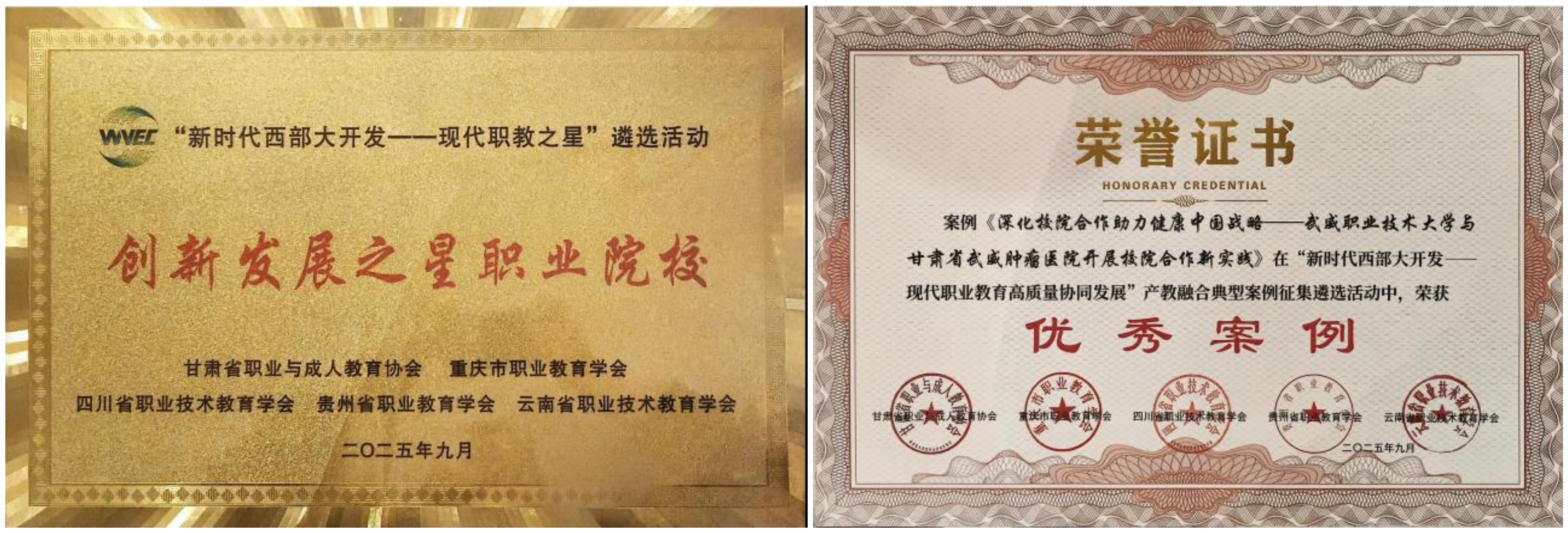 近日,從“新時(shí)代西部大開發(fā)——現(xiàn)代職業(yè)教育高質(zhì)量協(xié)同發(fā)展(蘭州)大會(huì)”上傳來喜訊,武威職業(yè)技術(shù)大學(xué)在甘肅省職業(yè)與成人教育協(xié)會(huì)組織的“新時(shí)代西部大開發(fā)——現(xiàn)代職教之星”和“新時(shí)代西部大開發(fā)——產(chǎn)教融合典型案例”征集遴選活動(dòng)中榮獲兩項(xiàng)重要榮譽(yù)。學(xué)校獲評(píng)“創(chuàng)新發(fā)展之星職業(yè)院?!?,《深化校院合作助力健康中國(guó)戰(zhàn)略——武威職業(yè)技術(shù)大學(xué)與甘肅省武威腫瘤醫(yī)院開展校院合作新實(shí)踐》榮獲“產(chǎn)教融合典型案例優(yōu)秀案例”。