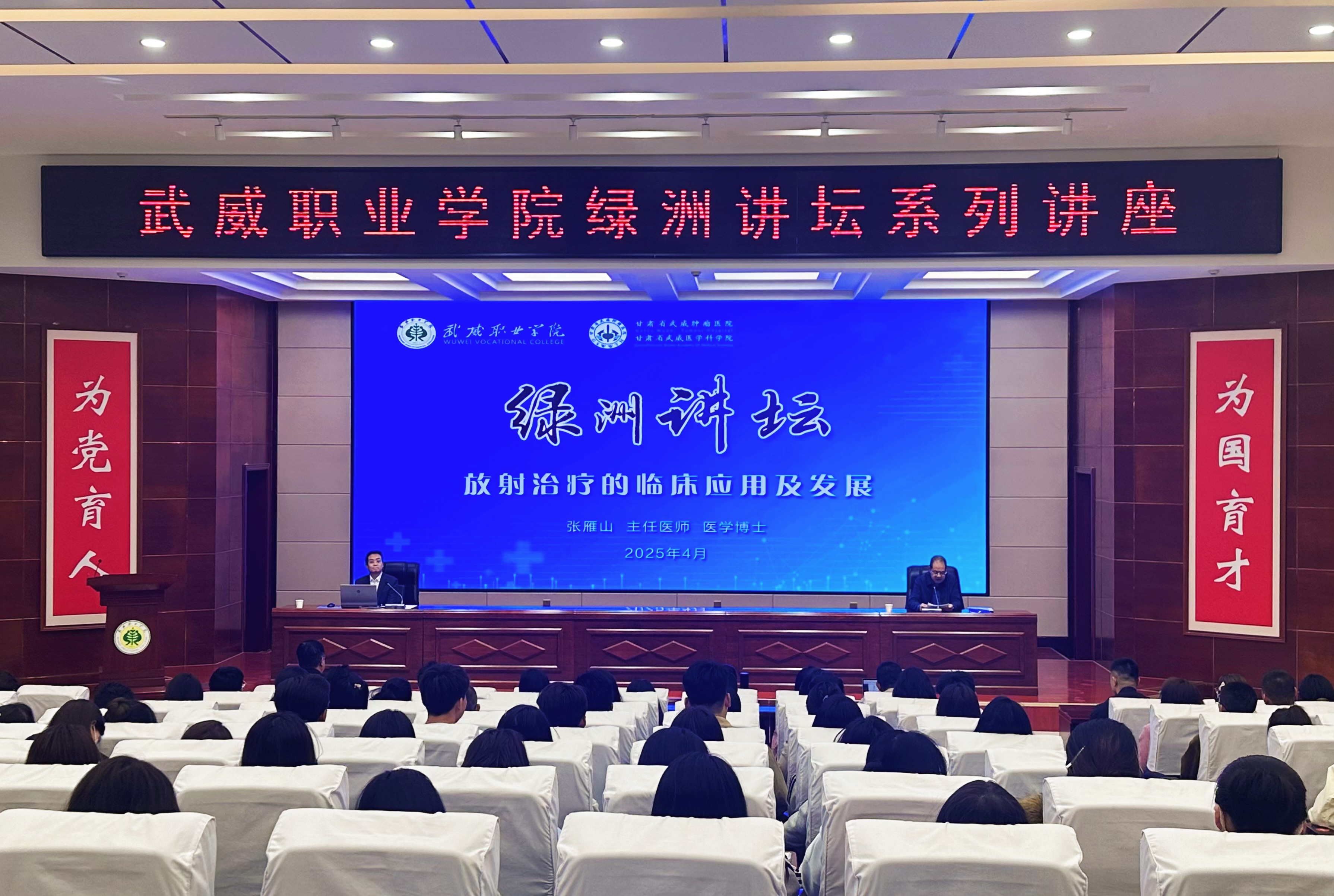 4月17日,學(xué)校特邀甘肅省武威腫瘤醫(yī)院副院長、重離子中心主任張雁山博士,在菁英廳作了“放射治療臨床應(yīng)用及發(fā)展”專題講座。學(xué)校黨委副書記翟存祥主持講座,醫(yī)學(xué)技術(shù)學(xué)院、藥學(xué)院、護(hù)理學(xué)院教師,2024級放射治療技術(shù)專業(yè)學(xué)生共210余人聆聽了講座。