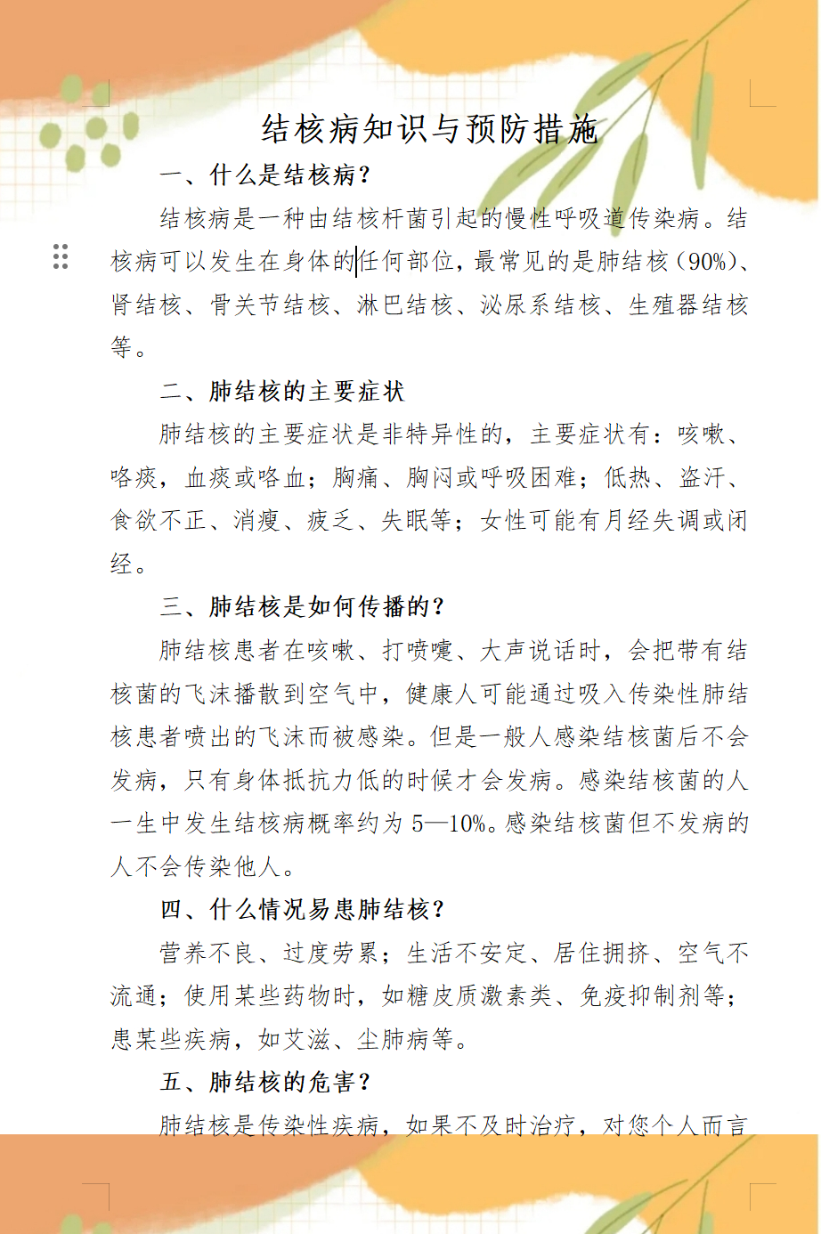 肺結(jié)核健康提示