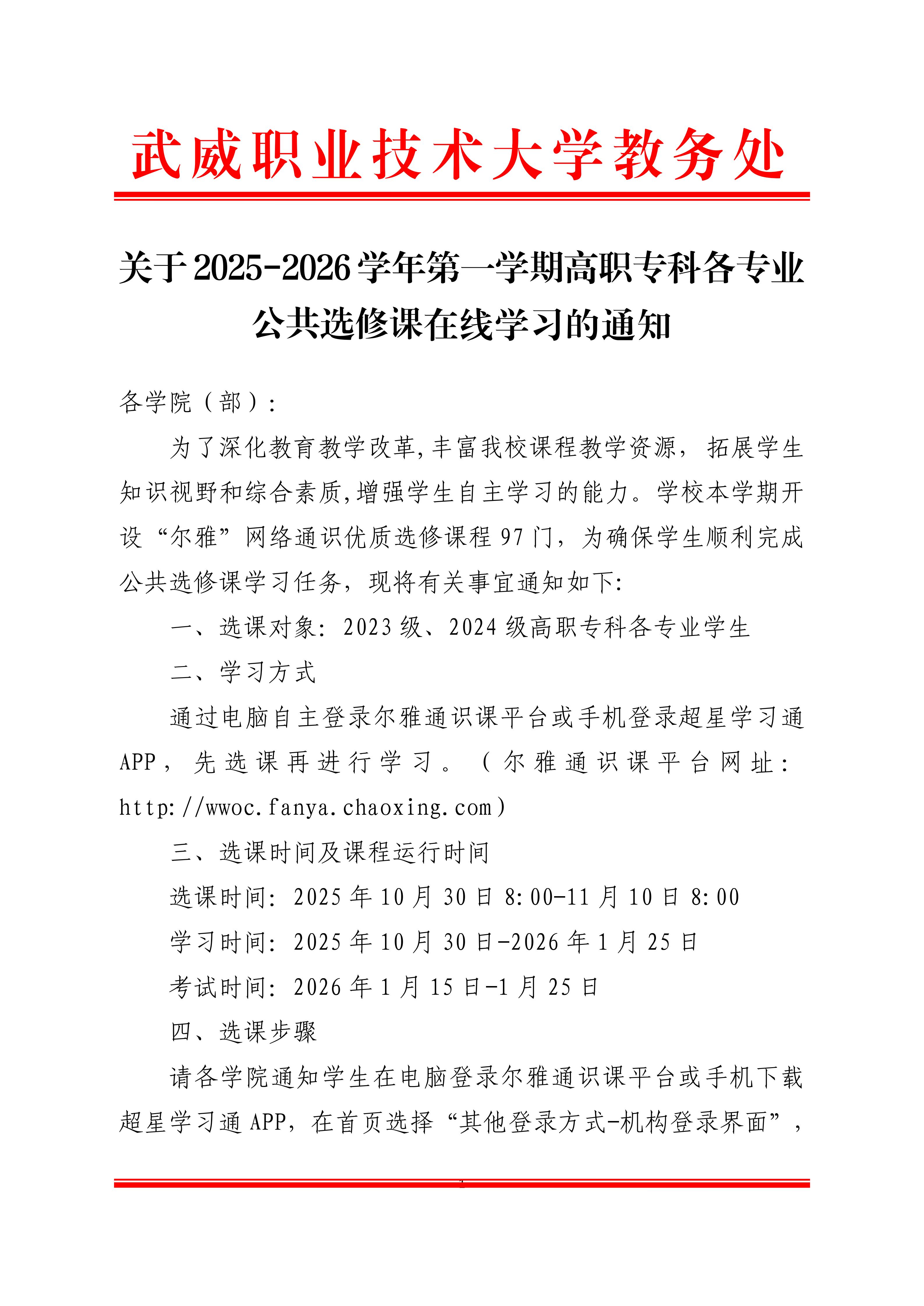 關(guān)于2025-2026學(xué)年第一學(xué)期高職??聘鲗I(yè)公共選修課在線學(xué)習(xí)的通知