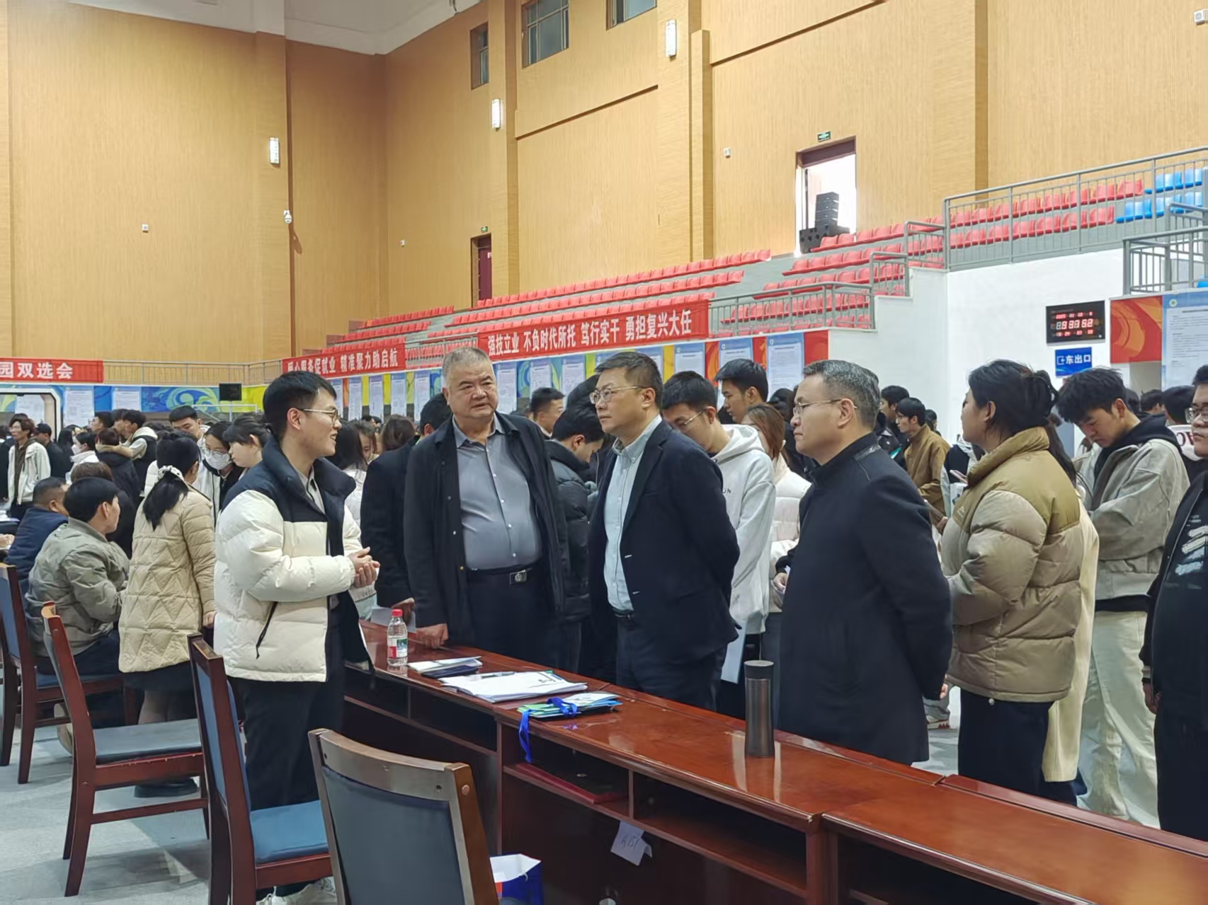 11月13日,校園招聘雙選會在學(xué)校體育館隆重舉行。校長李海軍、副校長王守云、伍國強(qiáng)親臨現(xiàn)場指導(dǎo)工作。李海軍詳細(xì)了解本屆畢業(yè)生的招聘需求與市場動向,走訪多家用人單位展位并聽取企業(yè)對學(xué)校人才培養(yǎng)的寶貴意見。同時(shí),與應(yīng)聘學(xué)生進(jìn)行親切交流,勉勵(lì)畢業(yè)生們要樹立正確的擇業(yè)觀,立足本職,服務(wù)社會,將個(gè)人成長融入國家發(fā)展大局。