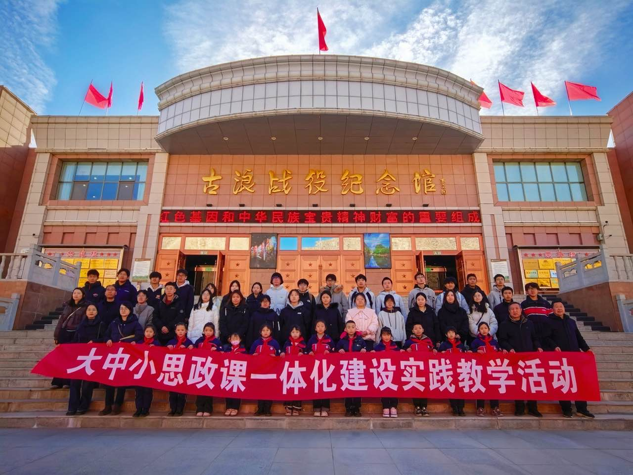校園參觀結(jié)束,雙方共同前往學(xué)校“大思政課”實(shí)踐教學(xué)基地---古浪戰(zhàn)役紀(jì)念館,開展了一場(chǎng)生動(dòng)而深刻的“大思政課”實(shí)踐教學(xué)活動(dòng)。在莊嚴(yán)肅穆的紀(jì)念館內(nèi),全體人員通過觀看歷史文物、聆聽現(xiàn)場(chǎng)講解、緬懷革命先烈,深刻感悟了紅色江山的來之不易,接受了偉大的革命精神洗禮。