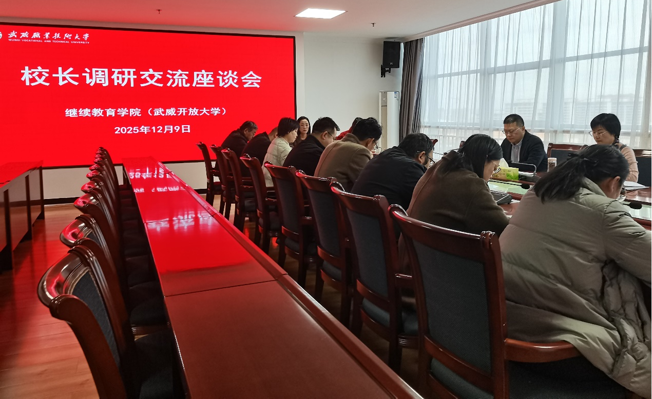 12月9日,校長李海軍深入繼續(xù)教育學院(武威開放大學)開展調研指導工作。此次調研聚焦學院招生管理、教學運行、社會培訓、社區(qū)教育等核心議題,旨在通過深度交流凝聚共識,為提升辦學質量與服務水平注入新動能。黨委委員、副校長何毅,繼續(xù)教育學院領導班子及全體教師參與調研。