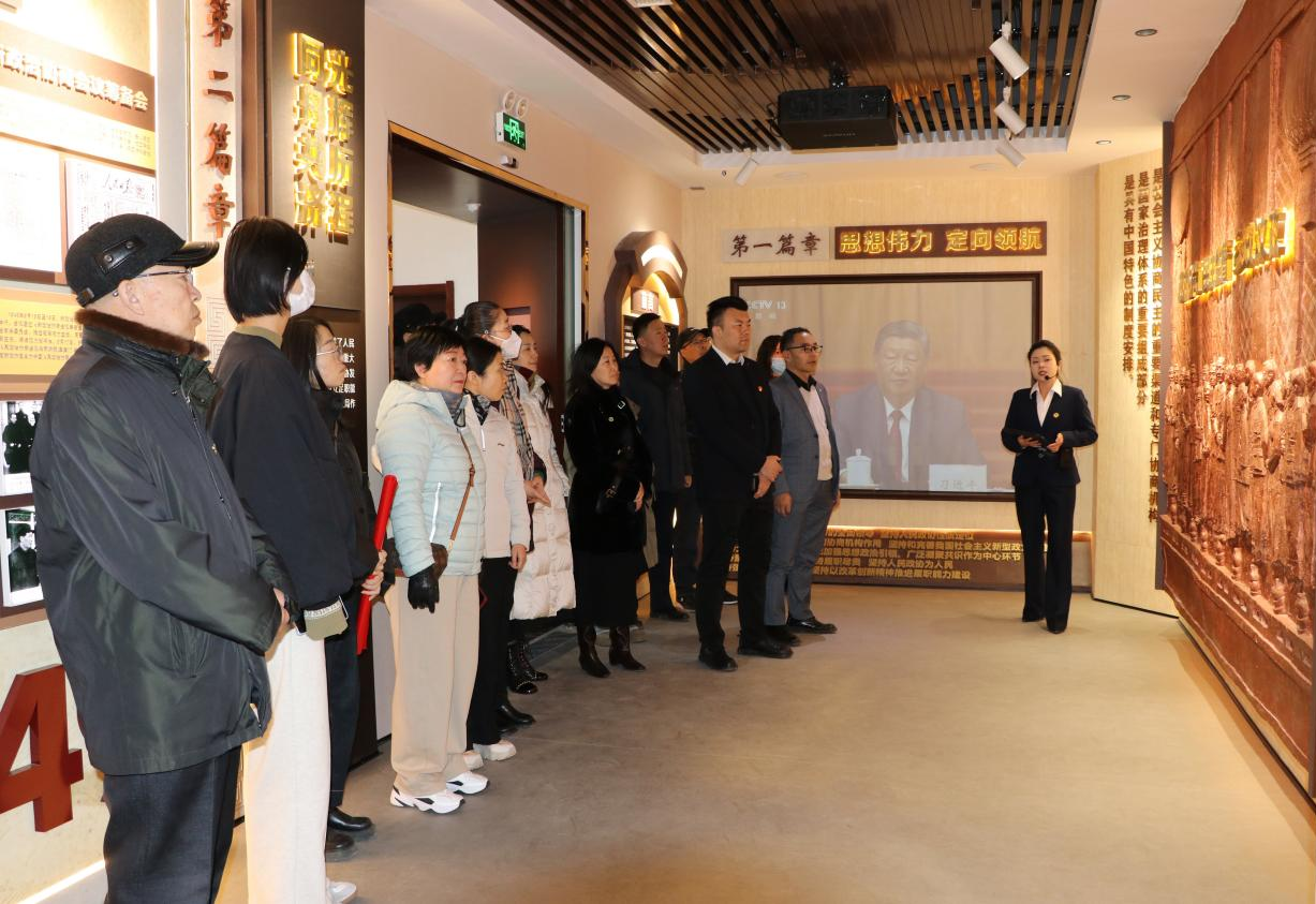 在文史館講解員的引導下,參觀隊伍依次駐足五大篇章展區(qū),通過一幅幅珍貴文獻、一件件歷史圖片、一段段生動文字,系統(tǒng)回顧人民政協(xié)的光輝發(fā)展歷程,深入了解政協(xié)在政治協(xié)商、民主監(jiān)督、參政議政、經(jīng)濟建設(shè)、文化傳承等方面的豐碩成果,真切感受各民主黨派與中國共產(chǎn)黨風雨同舟、肝膽相照的合作初心。從地方政協(xié)履職實踐的鮮活案例到地域文化傳承的深厚底蘊,從革命先輩的奮斗足跡到新時代的發(fā)展成就,每一處展陳都引發(fā)了參觀者的深切共鳴。