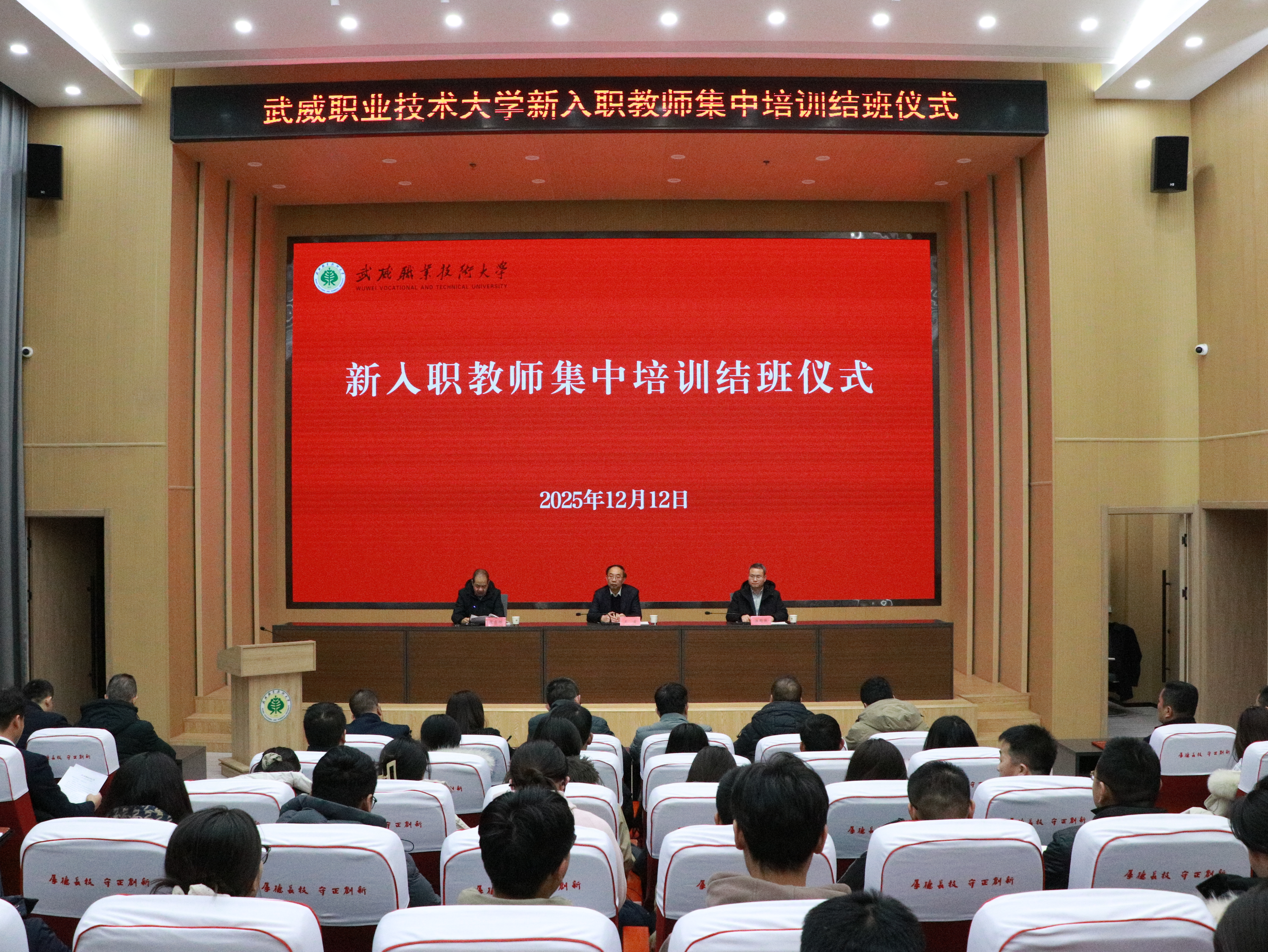 12月12日,學(xué)校在能源科技樓學(xué)術(shù)報告廳舉行新入職教師集中培訓(xùn)結(jié)班儀式。黨委書記王宏,黨委委員、副校長伍國強,相關(guān)部門及各學(xué)院(部)負責人及93名近三年新入職教師共百余人參加。黨委副書記翟存祥主持儀式。