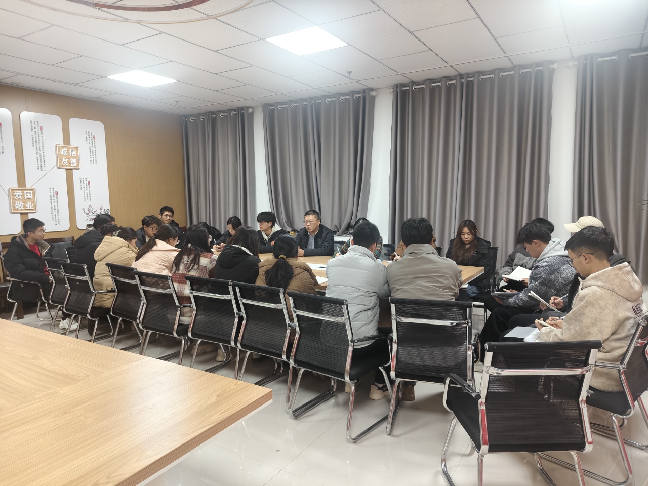 為切實開展“五進”“兩參加”“一講座”活動,近日,校長李海軍深入中科低碳新能源技術學院2025級新能源發(fā)電工程技術本科2班,通過講授思政課、進課堂聽評課、參與主題班會、開展面對面座談交流等多種形式,與學生深度互動,傳遞育人溫度。