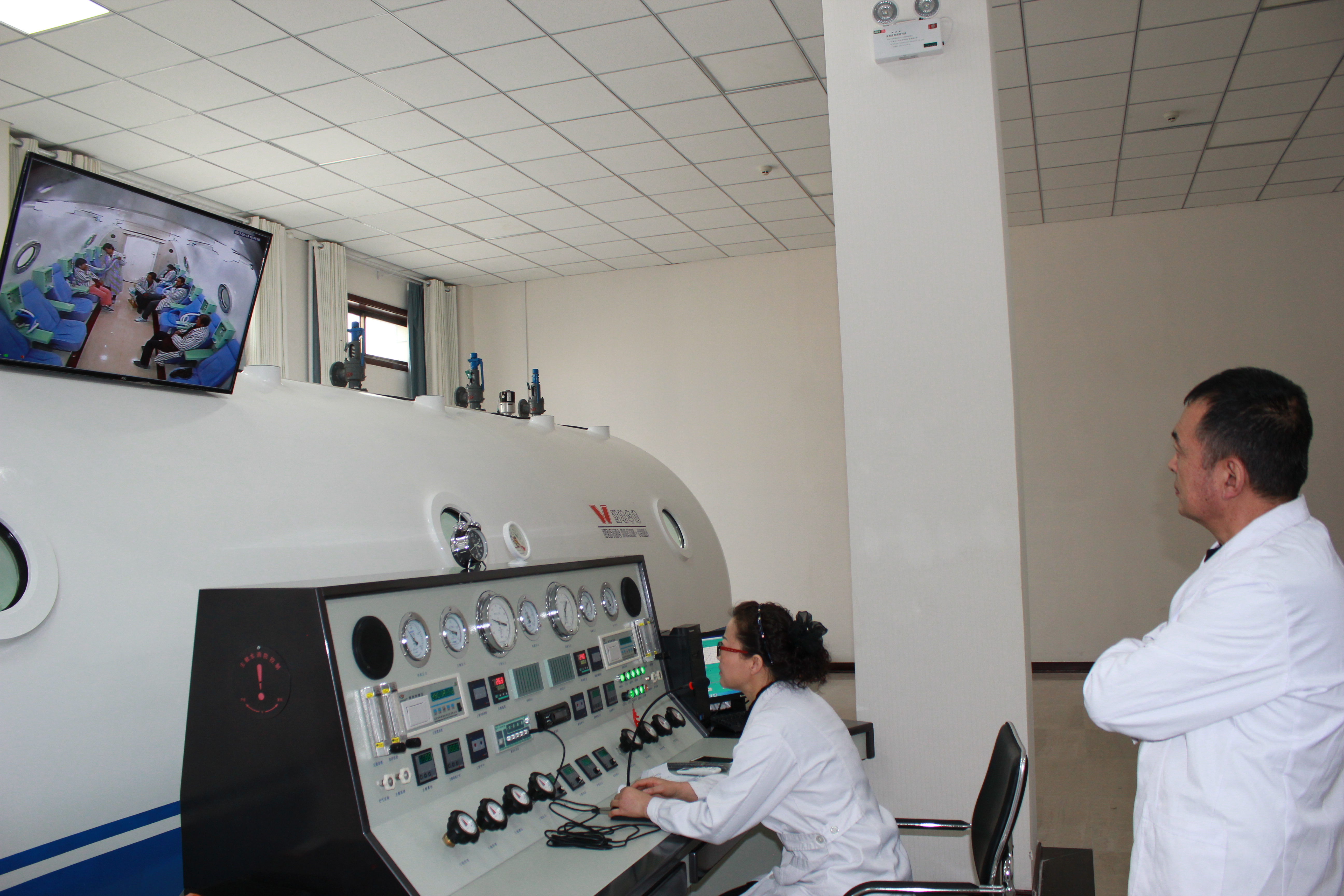高壓氧艙一次可容納16人同時(shí)治療。氧艙配有微機(jī)操艙系統(tǒng)、有先進(jìn)的電子監(jiān)視器、對講系統(tǒng)及靈敏的測氧儀,可嚴(yán)密觀察艙內(nèi)人員情況,提高了治療的安全性。