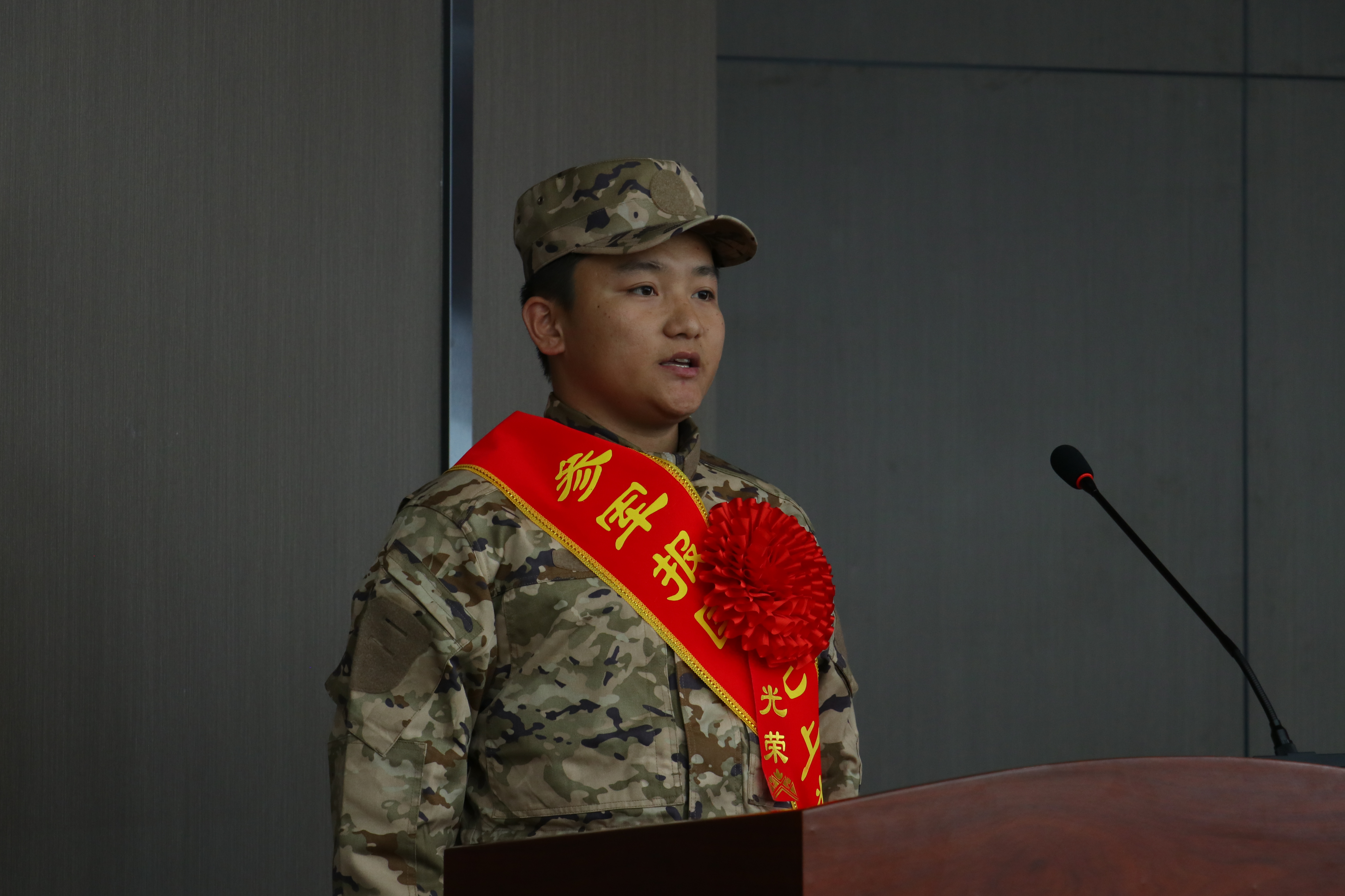 信息技術(shù)學(xué)院23級(jí)數(shù)字媒體大專班蔡紅強(qiáng)同學(xué)代表入伍新兵發(fā)言,表示將不負(fù)母校培養(yǎng),不負(fù)學(xué)校領(lǐng)導(dǎo)、老師和同學(xué)的期望!傳承衛(wèi)國(guó)戍邊英雄精神,爭(zhēng)取在軍營(yíng)中建功立業(yè),報(bào)效祖國(guó),展現(xiàn)高校學(xué)子良好的精神風(fēng)貌。