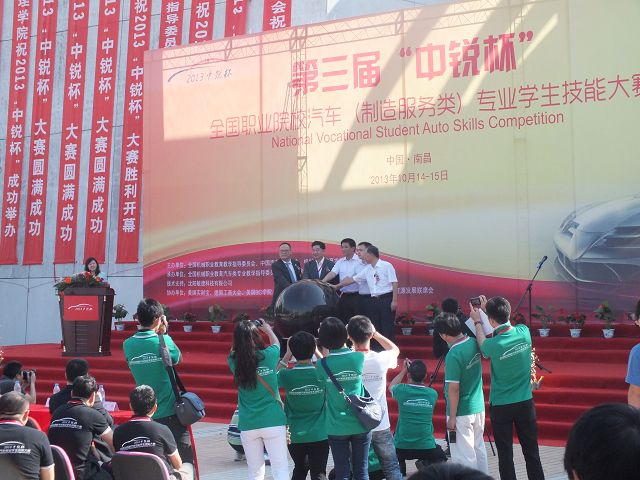 2013年101415日,第三屆“中銳杯”全國(guó)職業(yè)院校汽車(制造服務(wù)類)專業(yè)學(xué)生技能大賽”總決賽在江西南昌舉行。全國(guó)近百所院校三百多名學(xué)生參加了此次大賽。本次大賽由全國(guó)機(jī)械職業(yè)教育教學(xué)指導(dǎo)委員會(huì)、中國(guó)汽車流通協(xié)會(huì)、機(jī)械工業(yè)教育發(fā)展中心共同主辦,全國(guó)機(jī)械職業(yè)教育汽車類專業(yè)教學(xué)指導(dǎo)委員會(huì)、江西現(xiàn)代職業(yè)技術(shù)學(xué)院承辦。本次大賽裁判和評(píng)委均由汽車行業(yè)的各大代表以及資深企業(yè)營(yíng)銷專家擔(dān)任,因此評(píng)選也將更加注重實(shí)踐性和專業(yè)性。