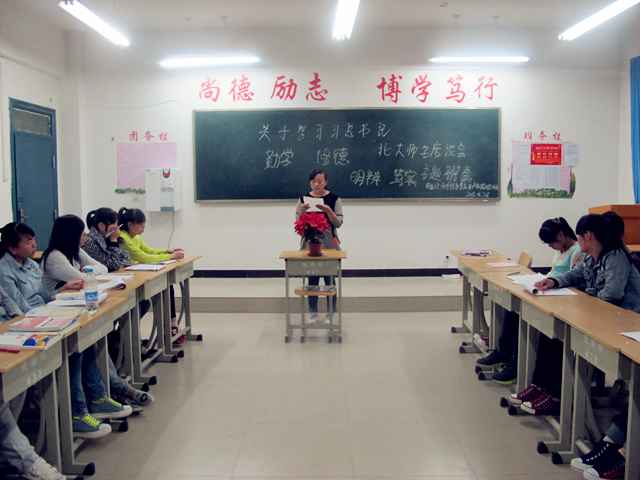 根據(jù)院團(tuán)委開展中國夢學(xué)習(xí)宣傳教育及培育和踐行社會主義核心價(jià)值觀活動有關(guān)安排,在習(xí)近平總書記與北京大學(xué)師生座談會上的講話發(fā)表一周年之際,為進(jìn)一步引領(lǐng)帶動廣大青年學(xué)生認(rèn)知、踐行總書記提出的“勤學(xué)、修德、明辨、篤實(shí)”的重要要求,我系集中開展了“如何練好習(xí)大大傳授的‘八字真經(jīng)’”主題團(tuán)日活動。