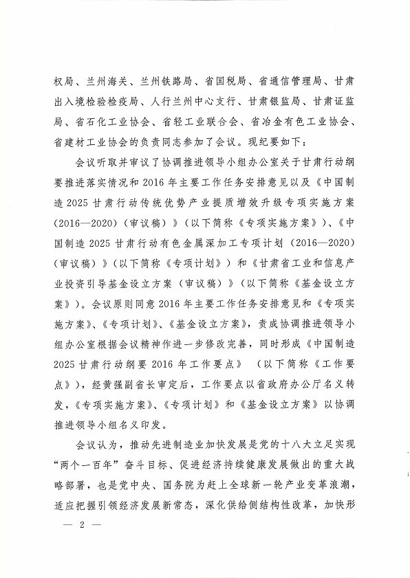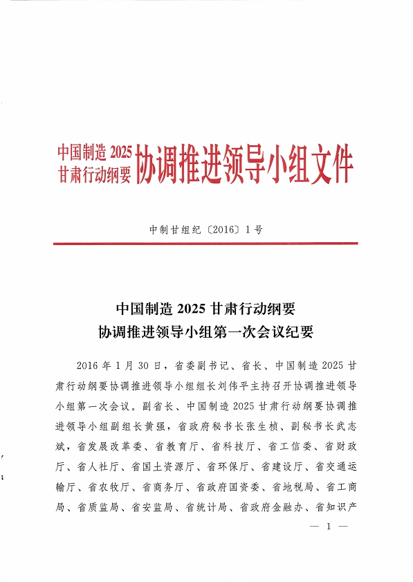 附件:中國制造 2025 甘肅行動綱要協(xié)調推進領導小組第一次會議紀要