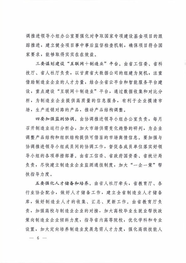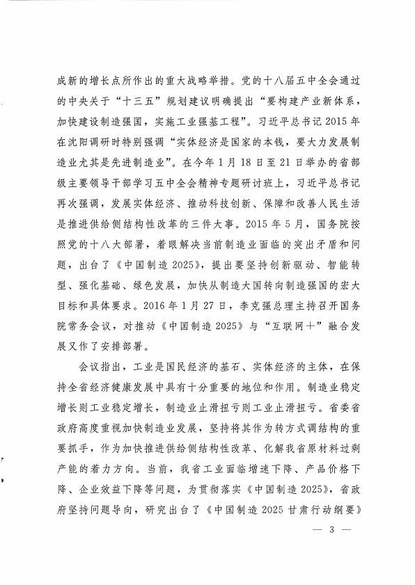 甘肅省教育廳關于轉發(fā)《中國制造 2025 甘肅行動綱要協(xié)調推進領導小組第一次會議紀要》的通知